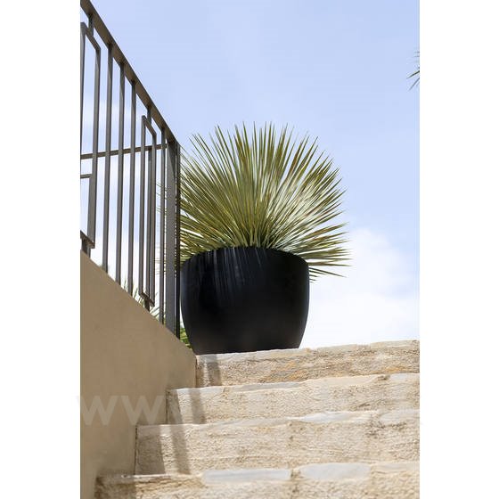 Vonkajší okrúhly kvetináč Jesslyn M, čierny, kolekcia Natural, kompozit Fiberstone, priemer 60 cm x h 52 cm, objem cca 107 l