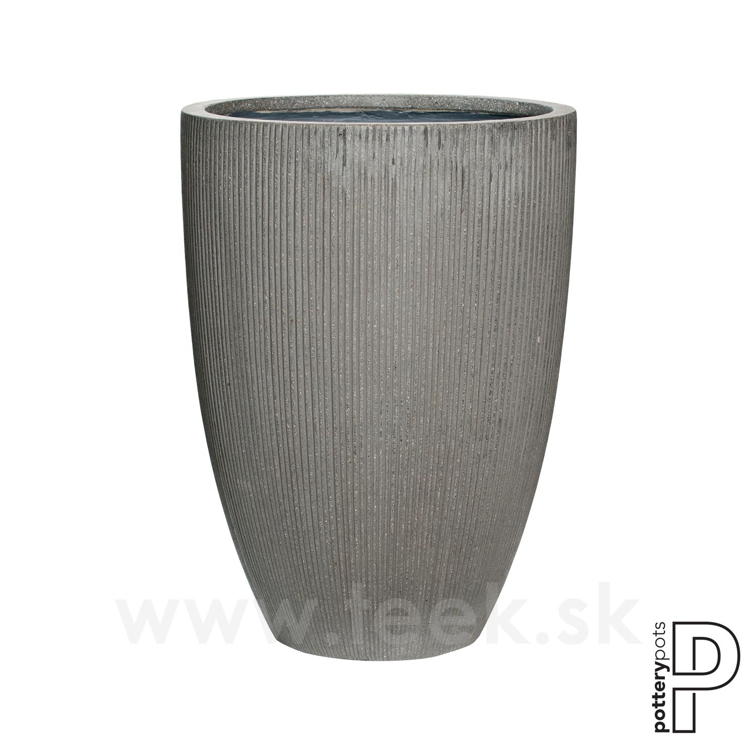 Vonkajší okrúhly kvetináč Ben L, tmavosivý, pruhy, priemer 40 cm x v 55 cm