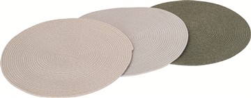 Vysokokvalitné, luxusne vyzerajúce vonkajšie podložky, ktoré môžete používať aj v interiéri. Nosné a ľahko sa čistia. Okrúhly priemer 40 cm, výška približne 5 mm. Materiál: polypropylén, rôzne farby.