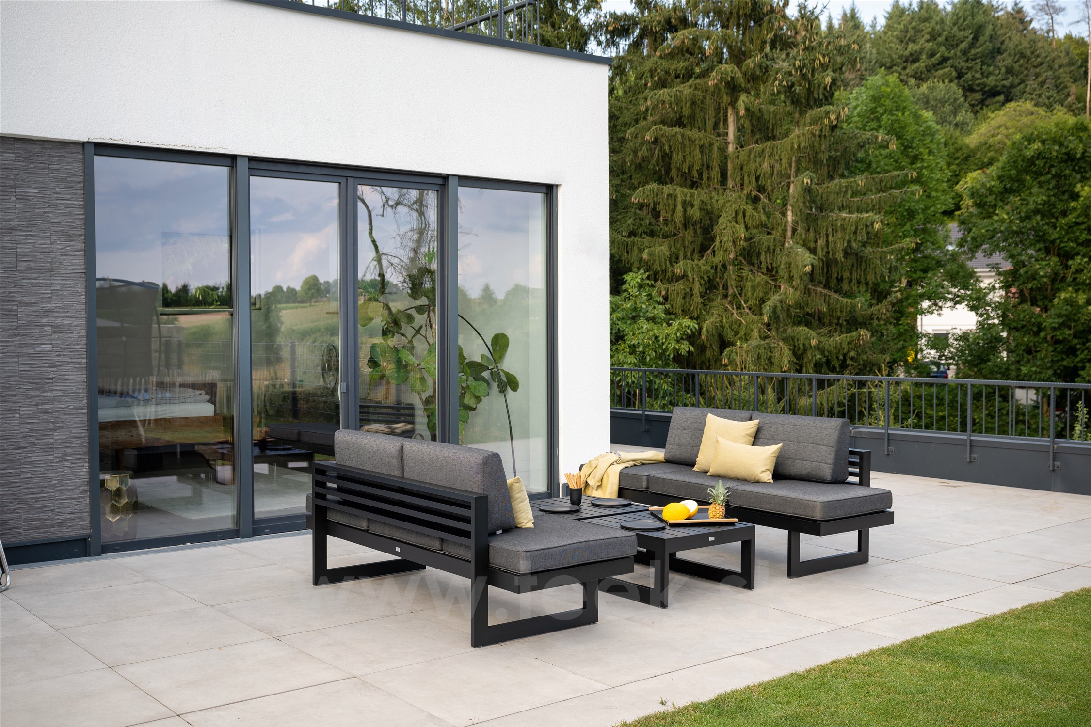 • Sedák a oporné vankúše sú z vonkajšej polyakrylovej látky.