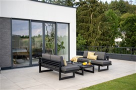 Jedálenská lavica/ležadlo New Holly, Stern, 216x80x73 cm, rám lakovaný hliník čierny (black matt), rýchloschnúca výplň, sedáky 100% polyakryl šedá-čierna (silk black)
