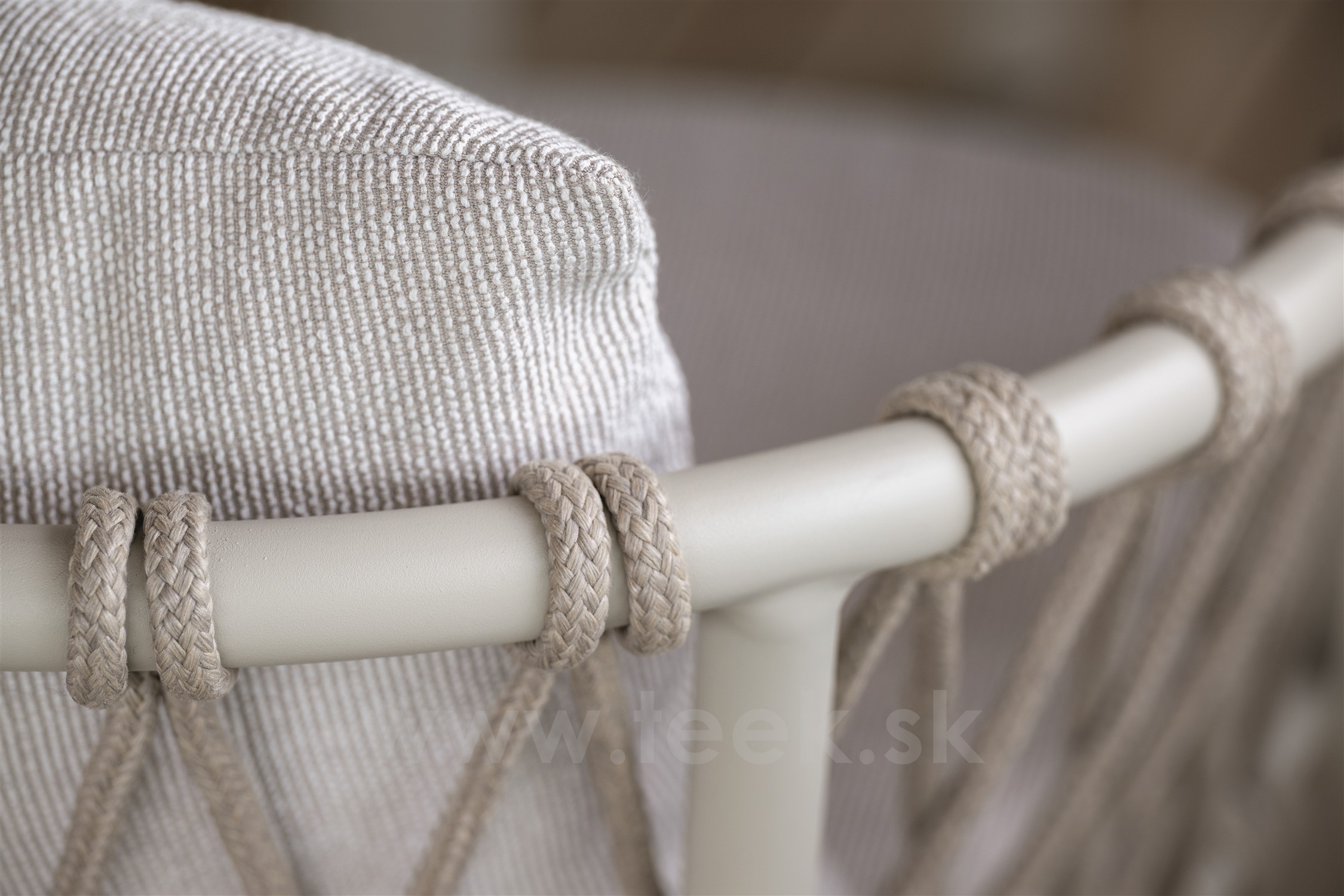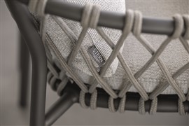 Rám pohovky je z lakovaného hliníku, který je opleten lankovým výpletem.