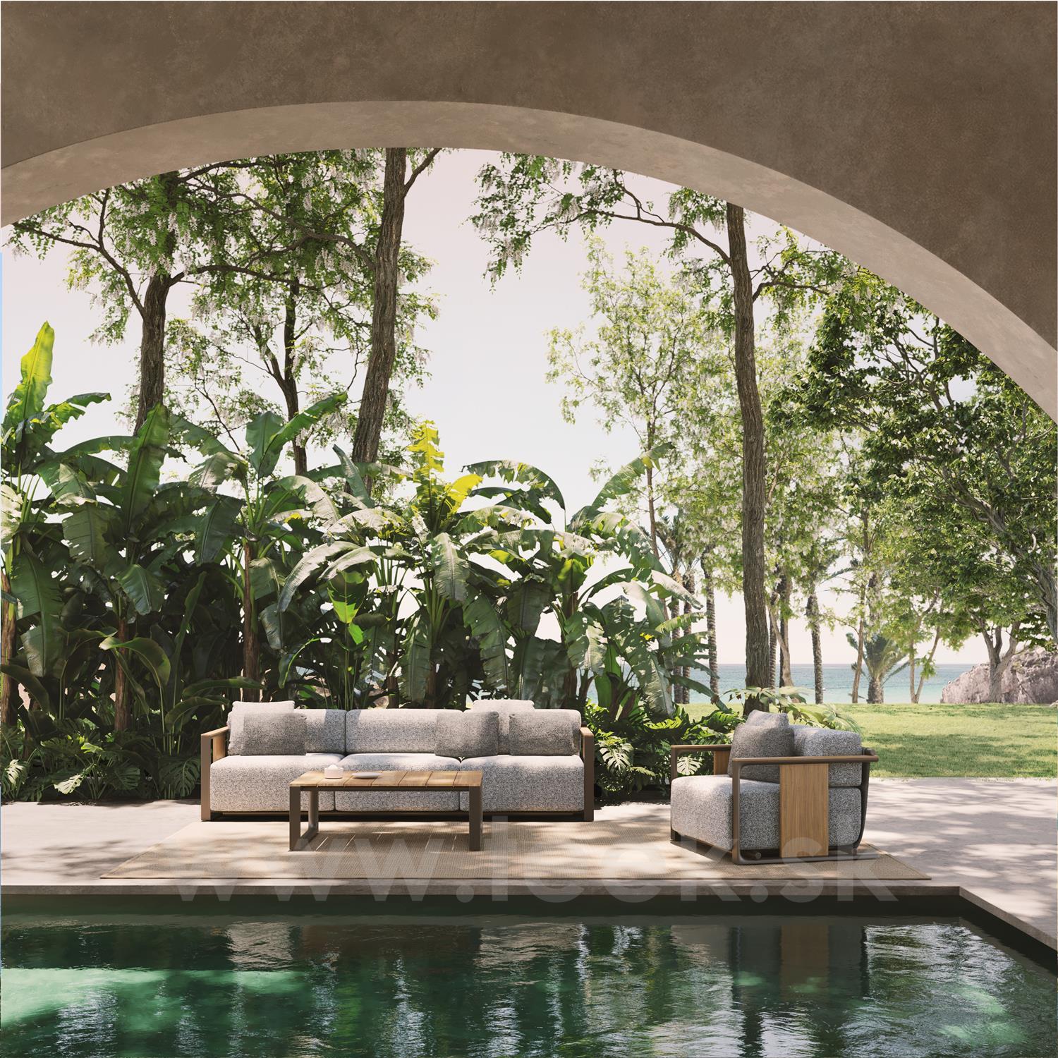Materiál: lakovaný hliník, teakové drevo, kvalitná vonkajšia tkanina. Farby podľa vzorkovníka.