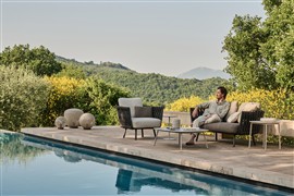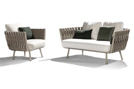 Ikonický lounge nábytok Tosca značky Tribu s rámom z lakovanej nehrdzavejúcej ocele, výplet vizuálne atraktívny plný výplet v špičkovej vonkajšej kvalite.