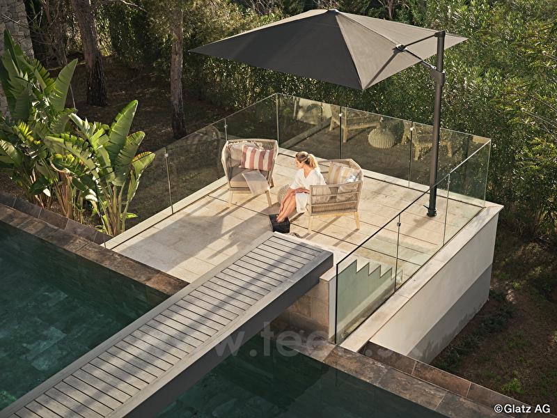 | Vlastnosti slnečníka | bočné slnečné clony otočné na zvislej osi |