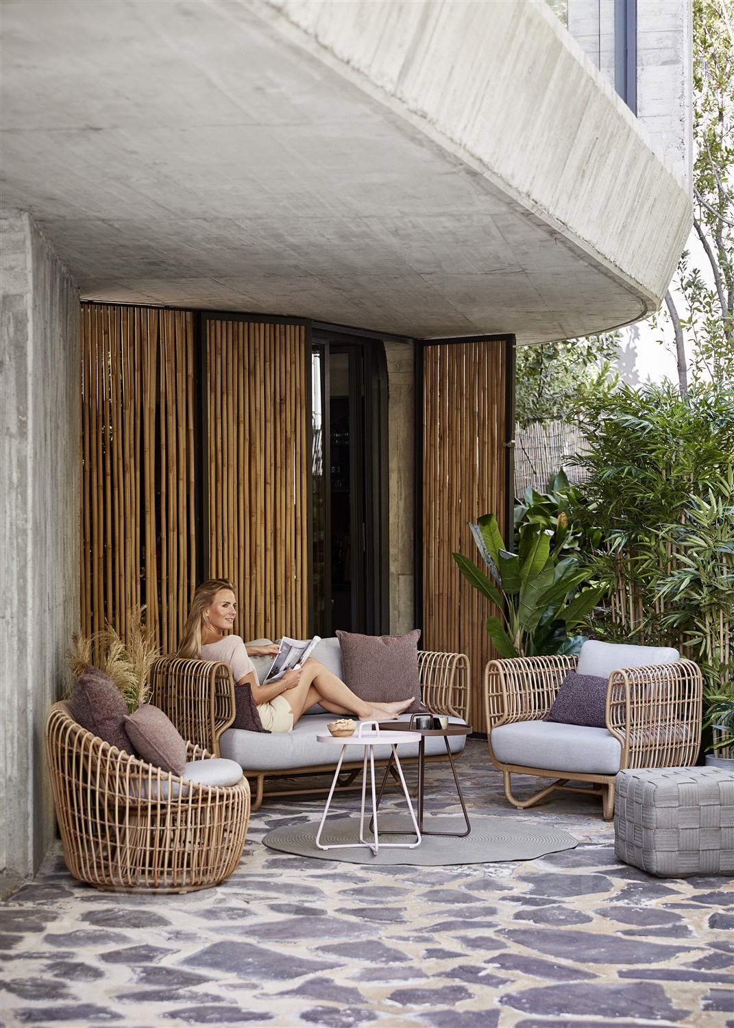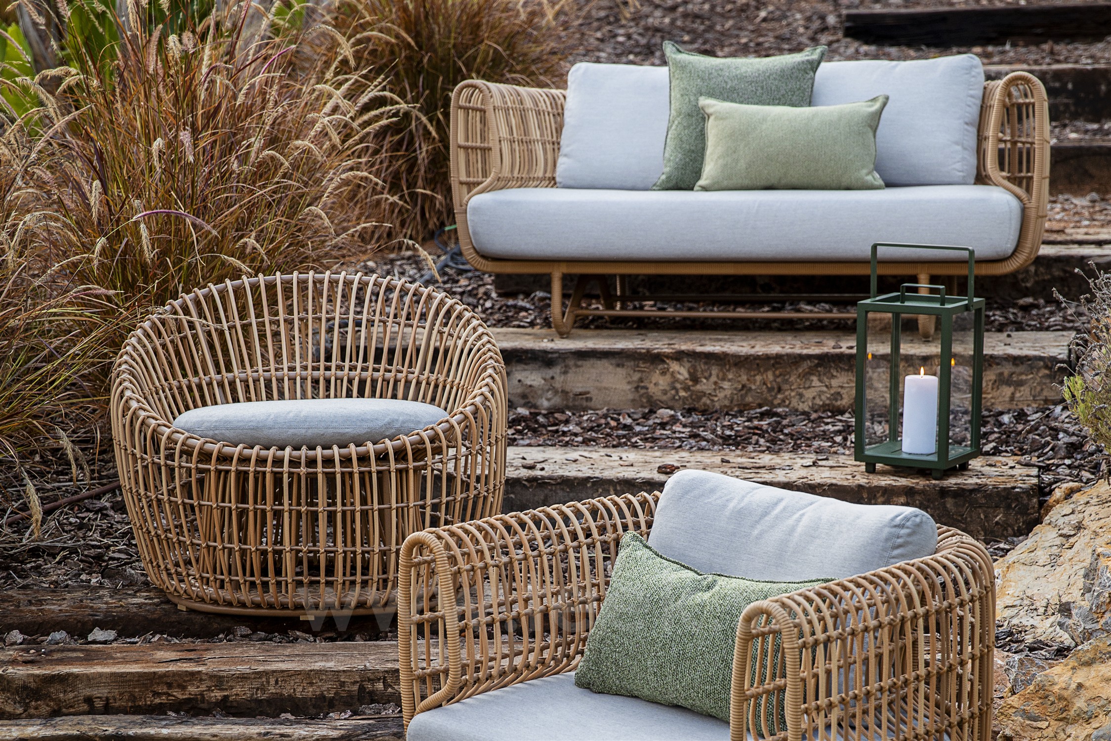 Dizajnové ratanové nízke kreslo z kolekcie Nest značky Cane-line.