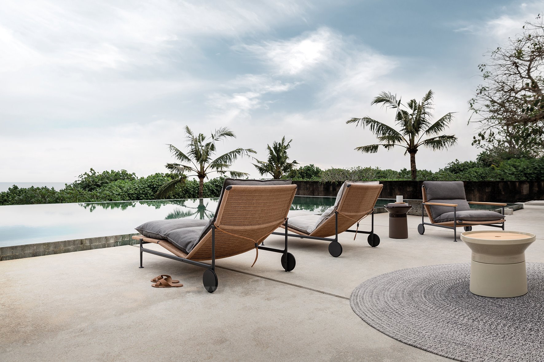 Low chair with wheels Zenith, Gloster, aluminium, rattan, Sunbrella