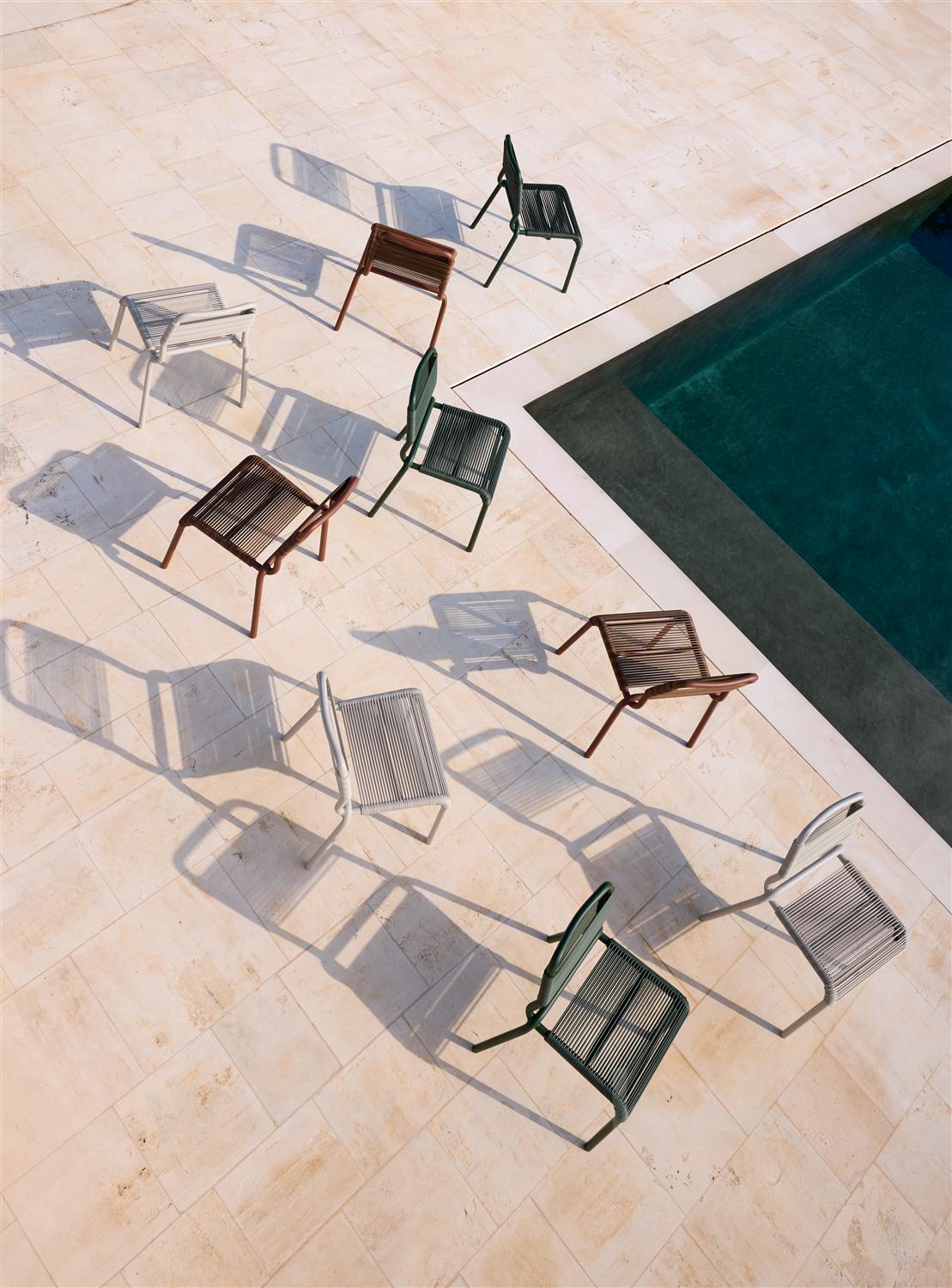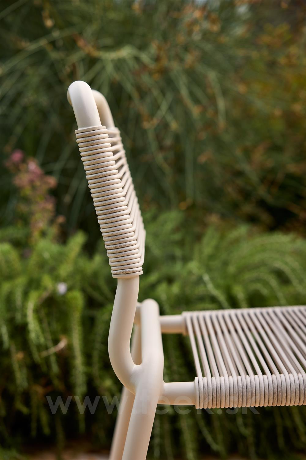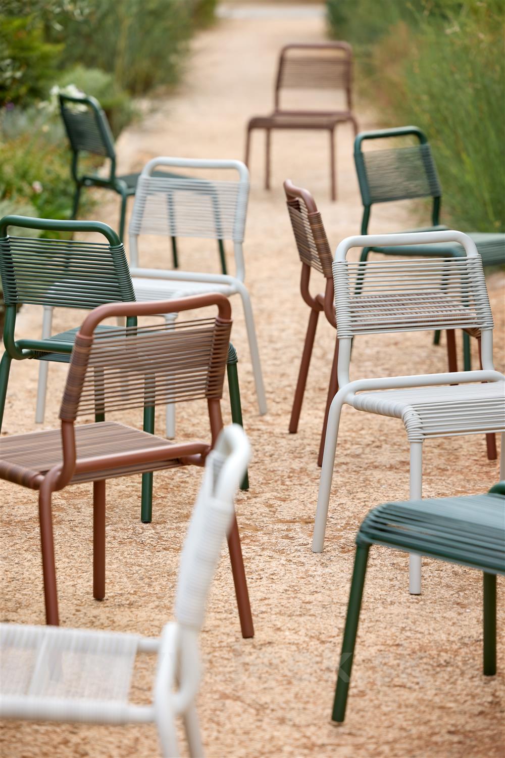 Rám židle je z hliníku. Lankový výplet z umělého ratanu (Cane-line Weave).