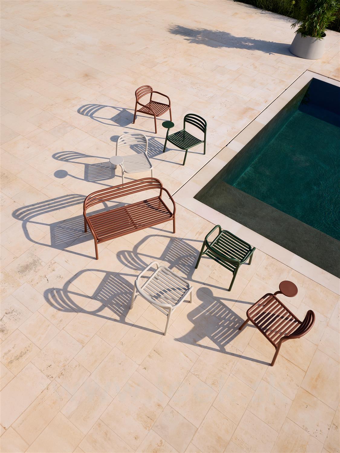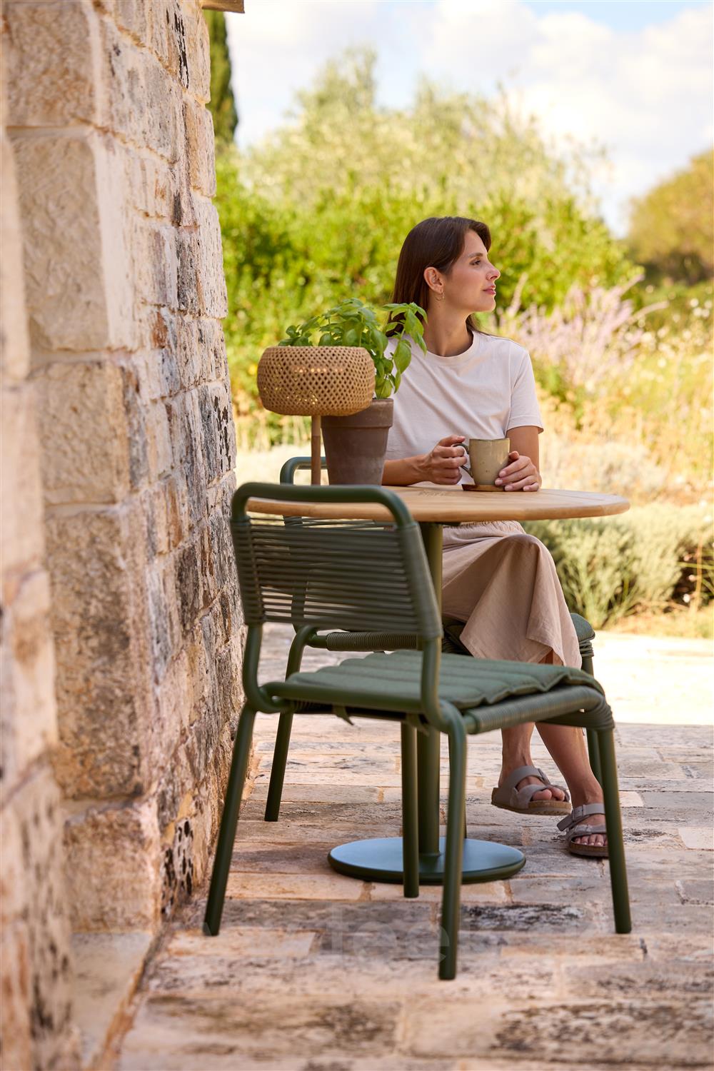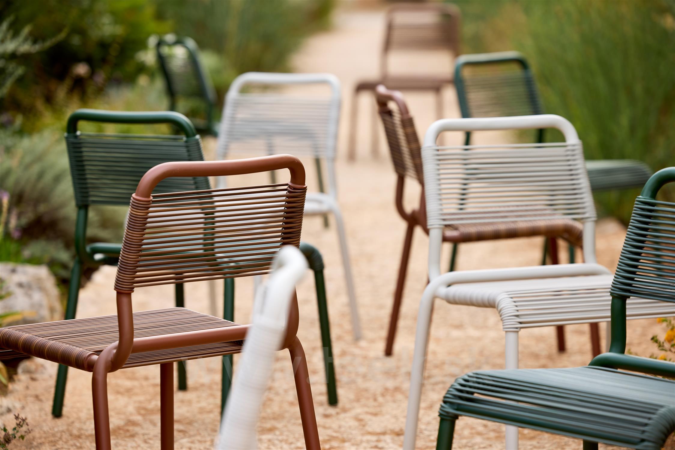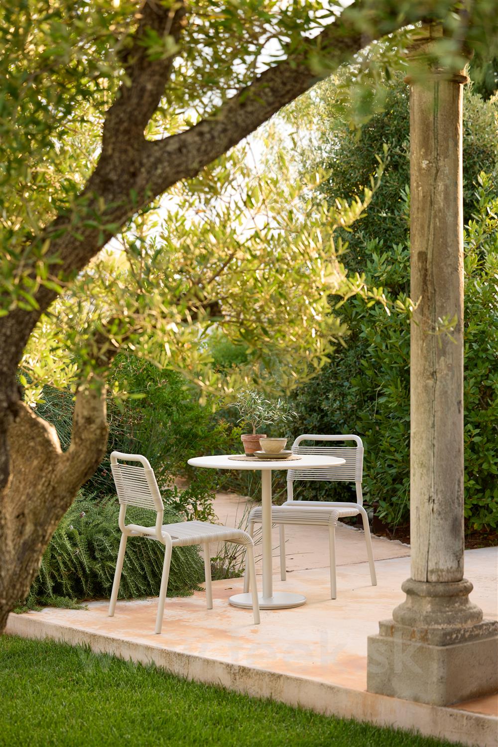 Rám židle je z hliníku. Lankový výplet z umělého ratanu (Cane-line Weave).