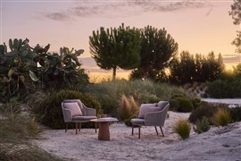 Nízke záhradné kreslo Senja od spoločnosti Tribu.