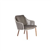 Rám záhradného kresla je vyrobený z hliníka, nohy kresla sú na výber z lakovaného hliníka alebo teakového dreva.