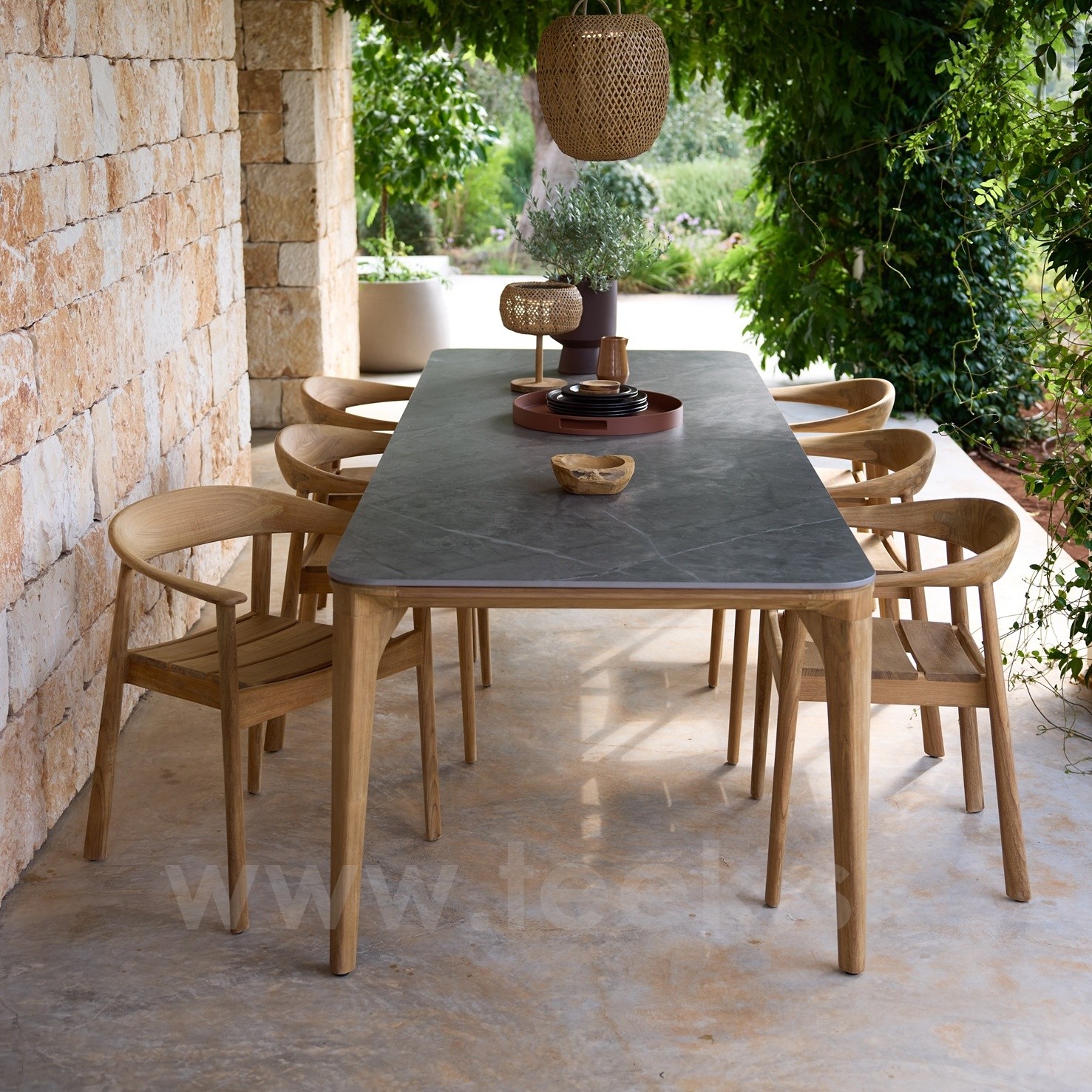 Jedálenský stôl Aspect, Cane-line, obdĺžnikový 280x100 cm, teak, doska keramika