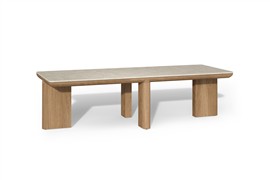 Nízky stolík Amanu, Tribu, obdĺžnikový 155x58x42 cm, rám teak, doska keramika dekor sabbia