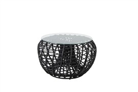 Konferenčný stolík/podnožka Nest značky Cane-line Rám stolíka je z umelého ratanu, doska sklenená.