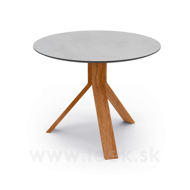 Freddie side table, Stern, round 60 × 48 cm, teak frame, HPL Quartz tabletop