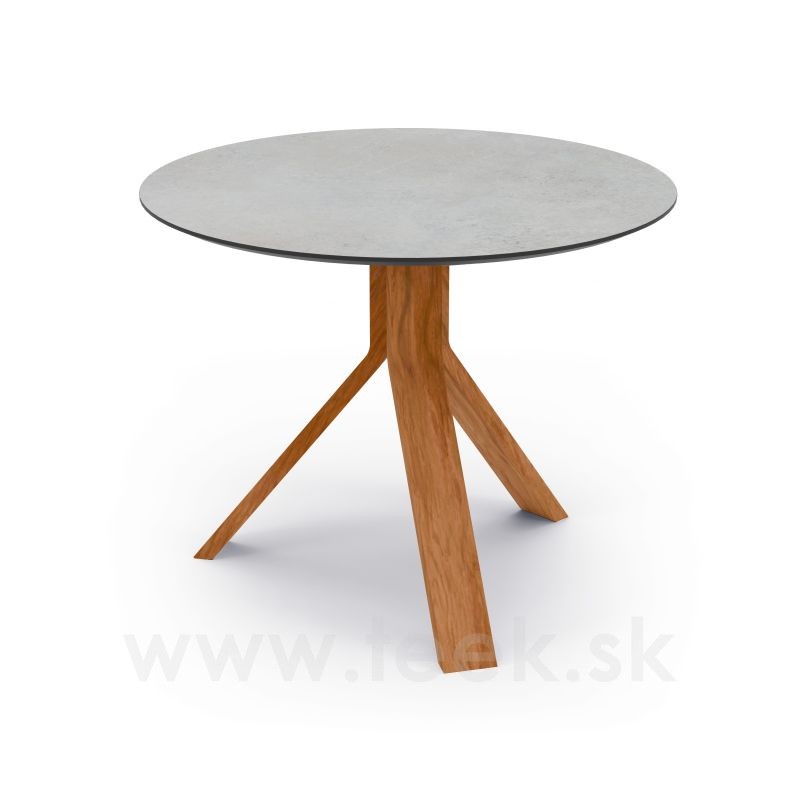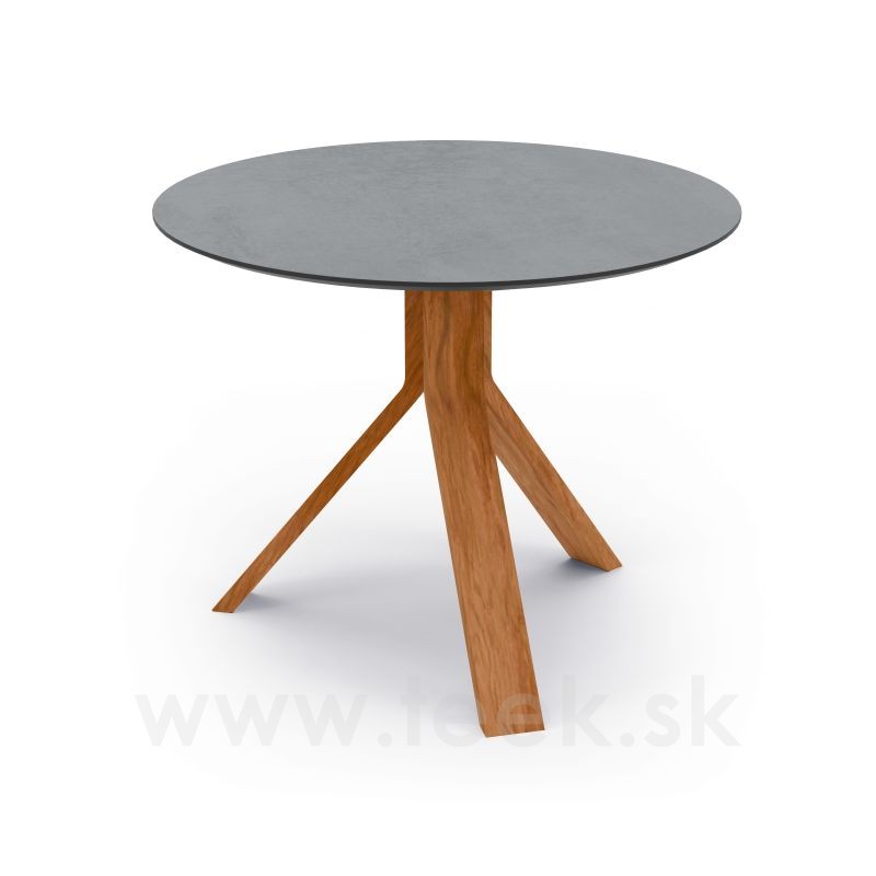 Freddie side table by Stern, round 60×48 cm, teak frame, HPL Cement tabletop