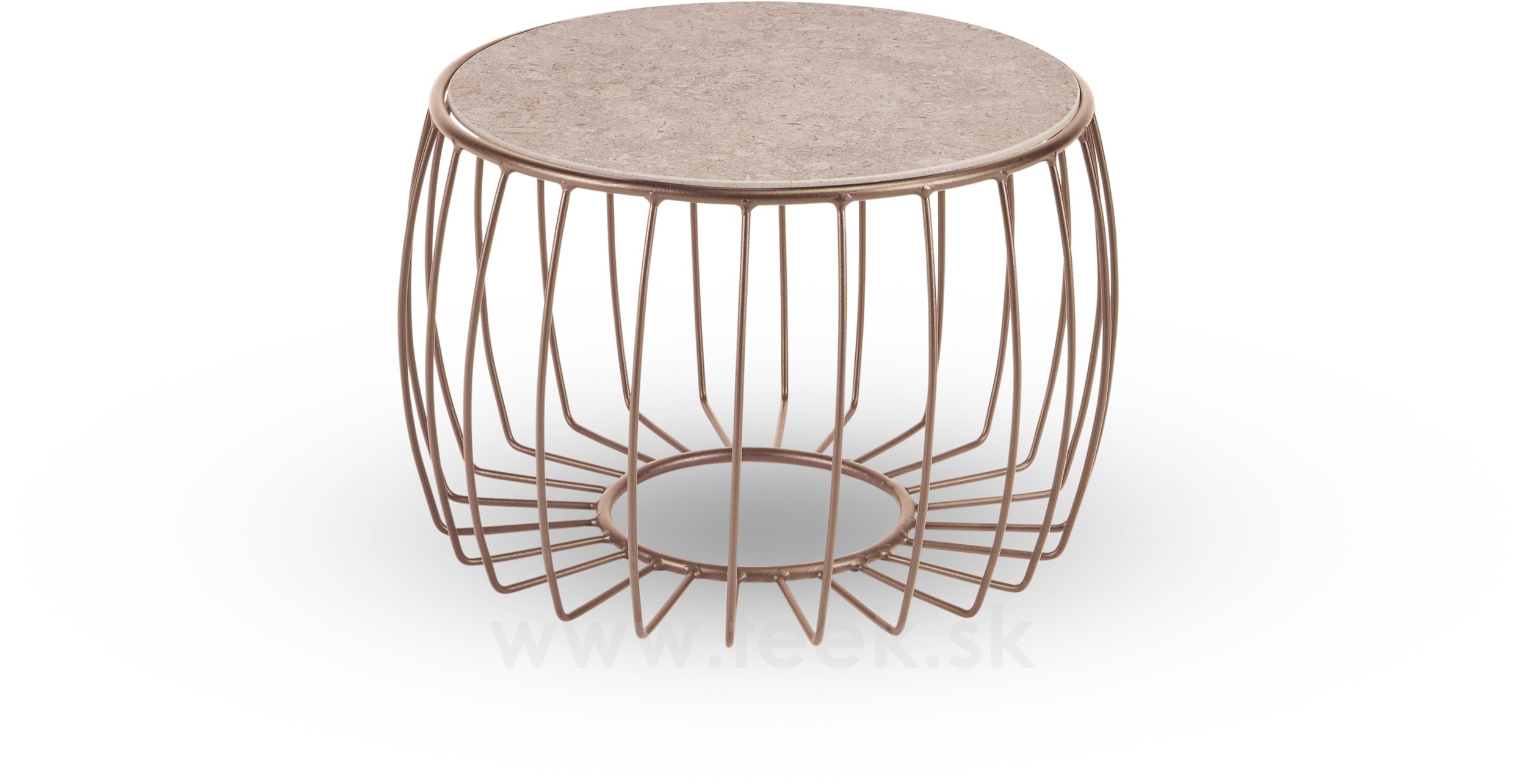 Coffee table Oxo, Stern, round 57x37 cm, top diameter 48 cm, frame painted aluminium sand matt, ceramic top decor Stone beige