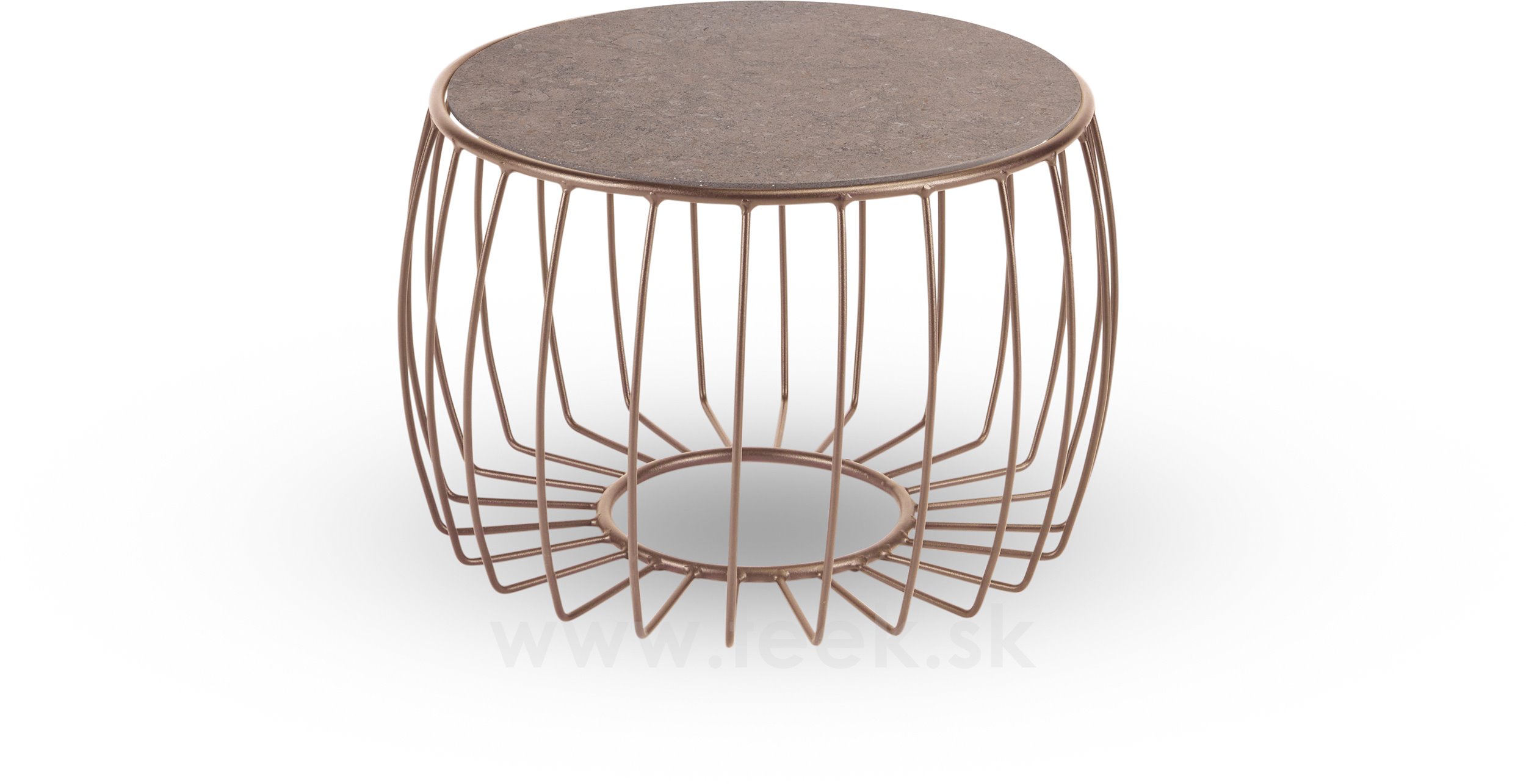 Coffee table Oxo, Stern, round 57x37 cm, top diameter 48 cm, frame painted aluminium sand matt, ceramic top decor Stone grey