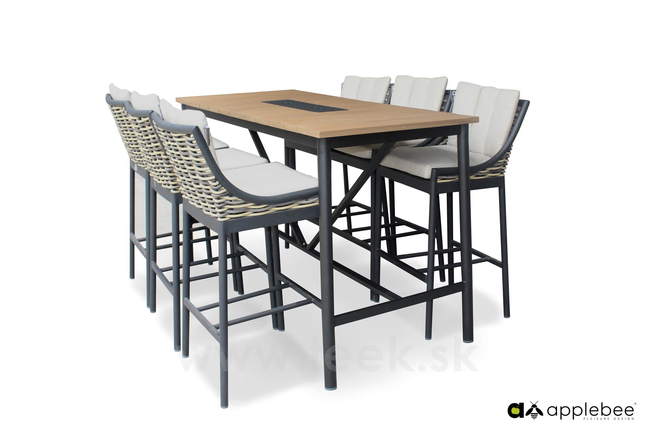 Barový stůl Milou, Apple Bee, obdélníkový 150x78x105 cm, hliník, teak