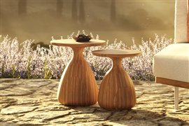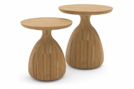 Celodrevený okrúhly odkladací stolík Tsuki od spoločnosti Manutti.