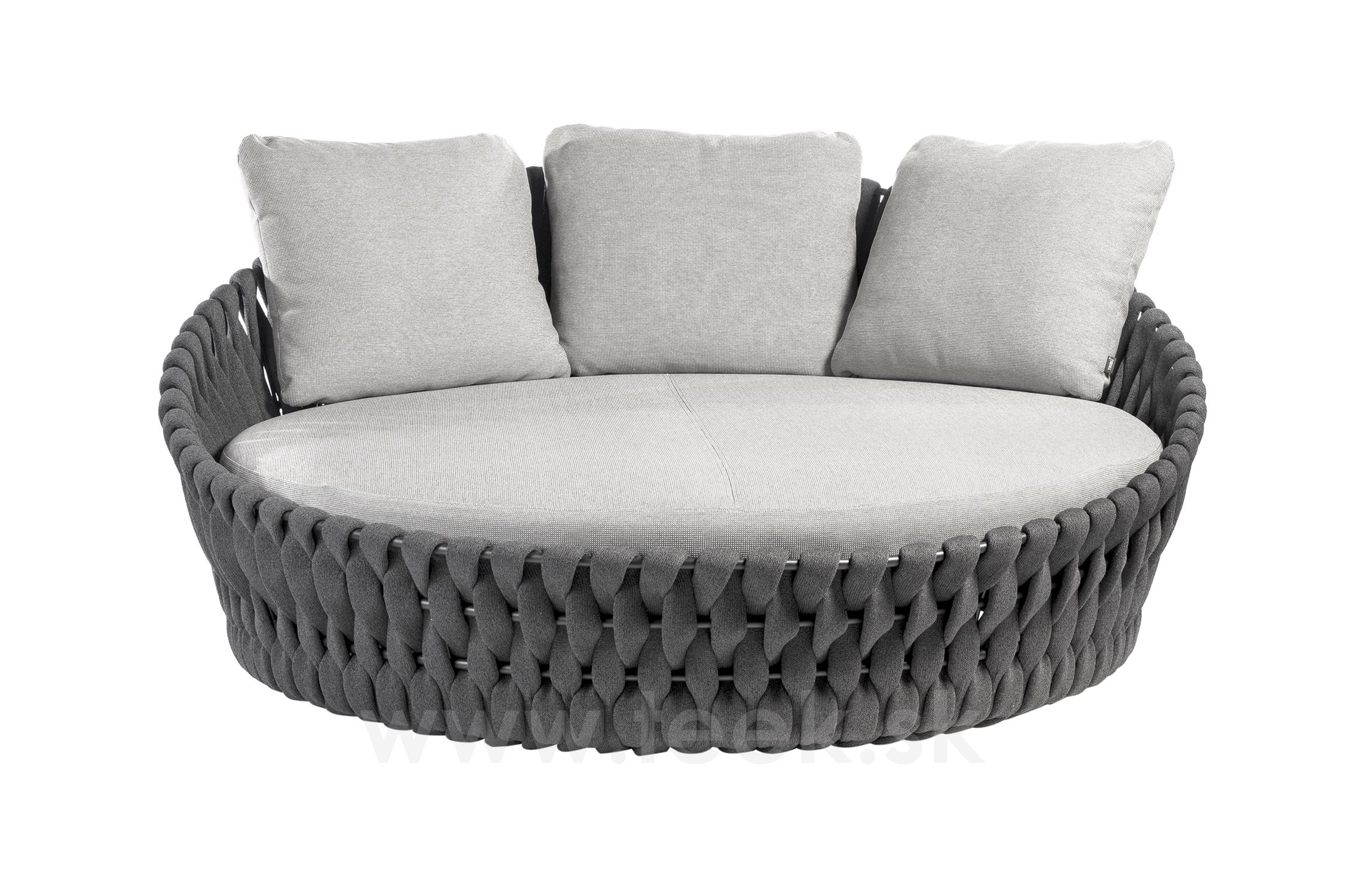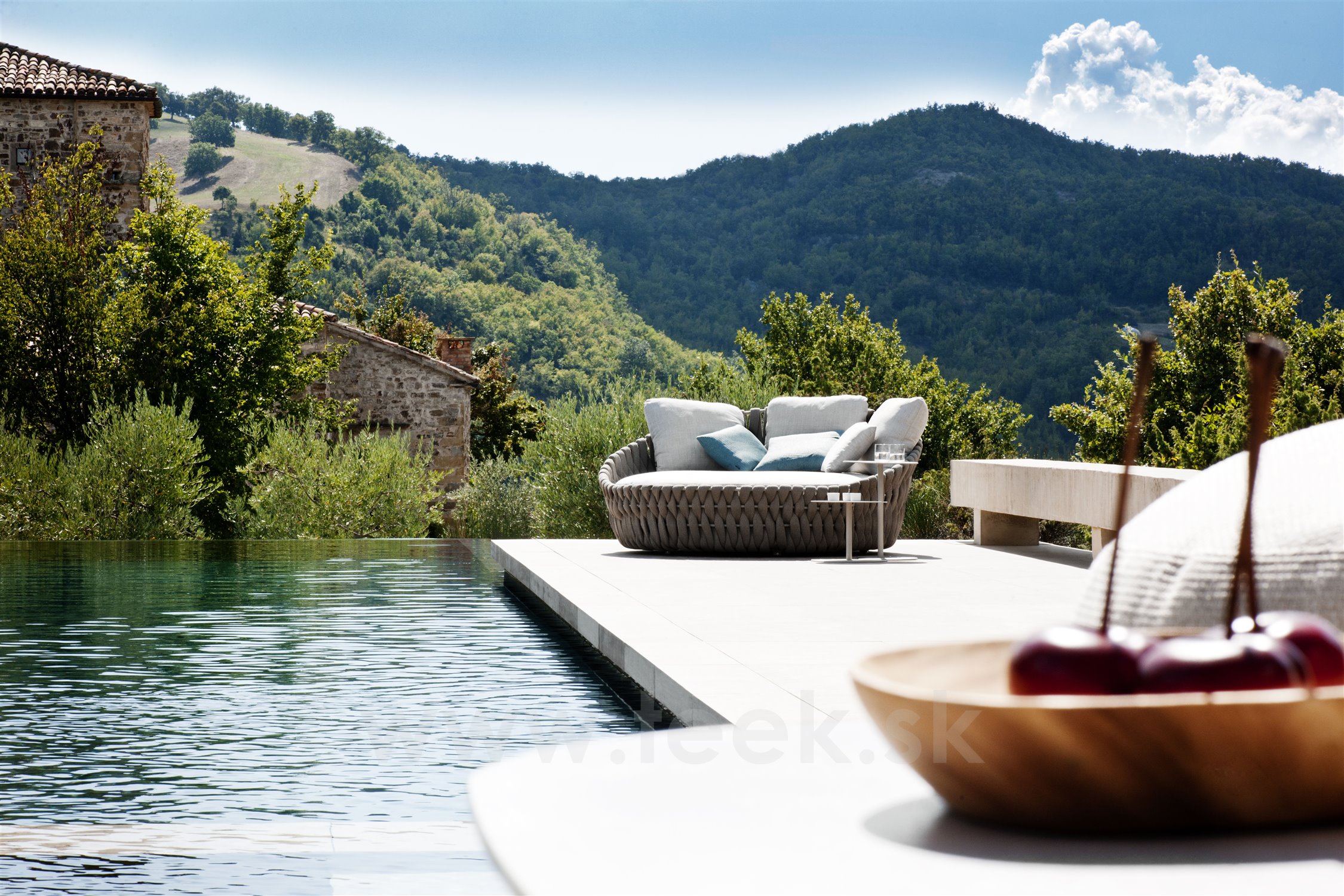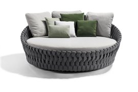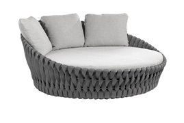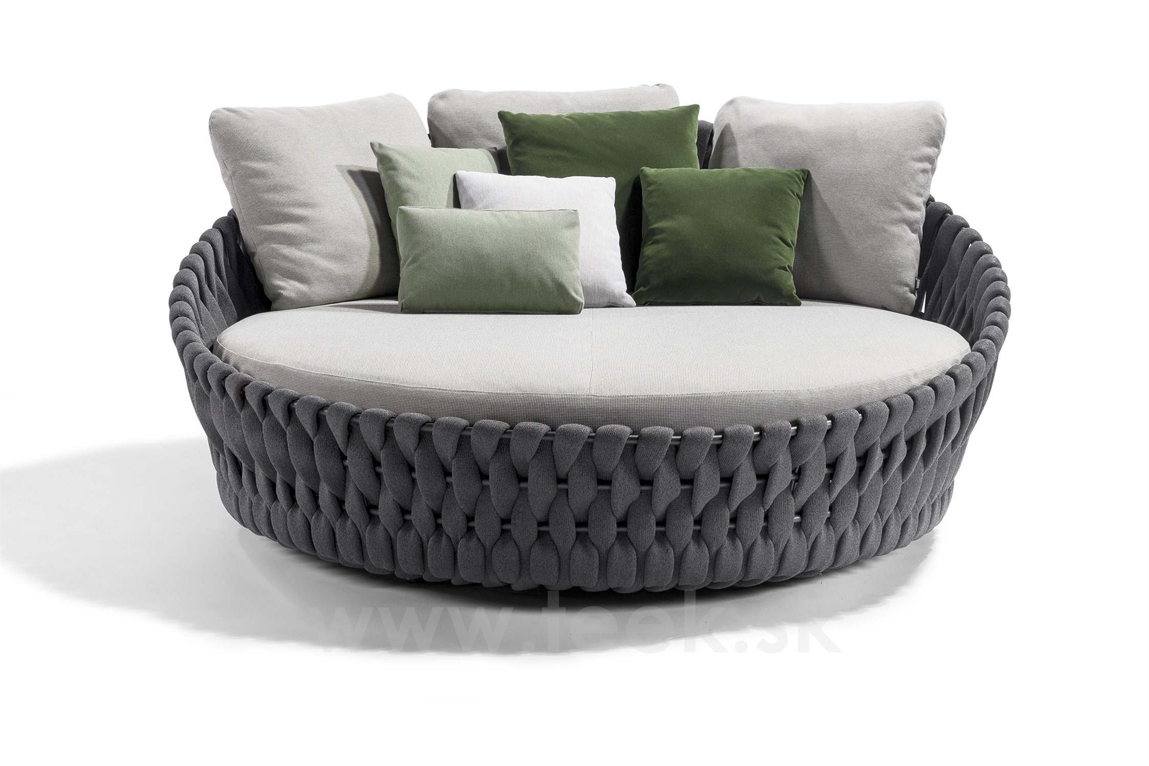 Vonkajšia denná posteľ Tosca od spoločnosti Tribu s rámom z lakovanej nehrdzavejúcej ocele, vyrobená z dizajnovo zaujímavého pásového (vyplneného) výpletu. K dispozícii vo viacerých farebných variantoch. Pre väčšie pohodlie odporúčame objednať sedacie a zadné vankúše z vonkajších odolných látok s nepremokavou výplňou.