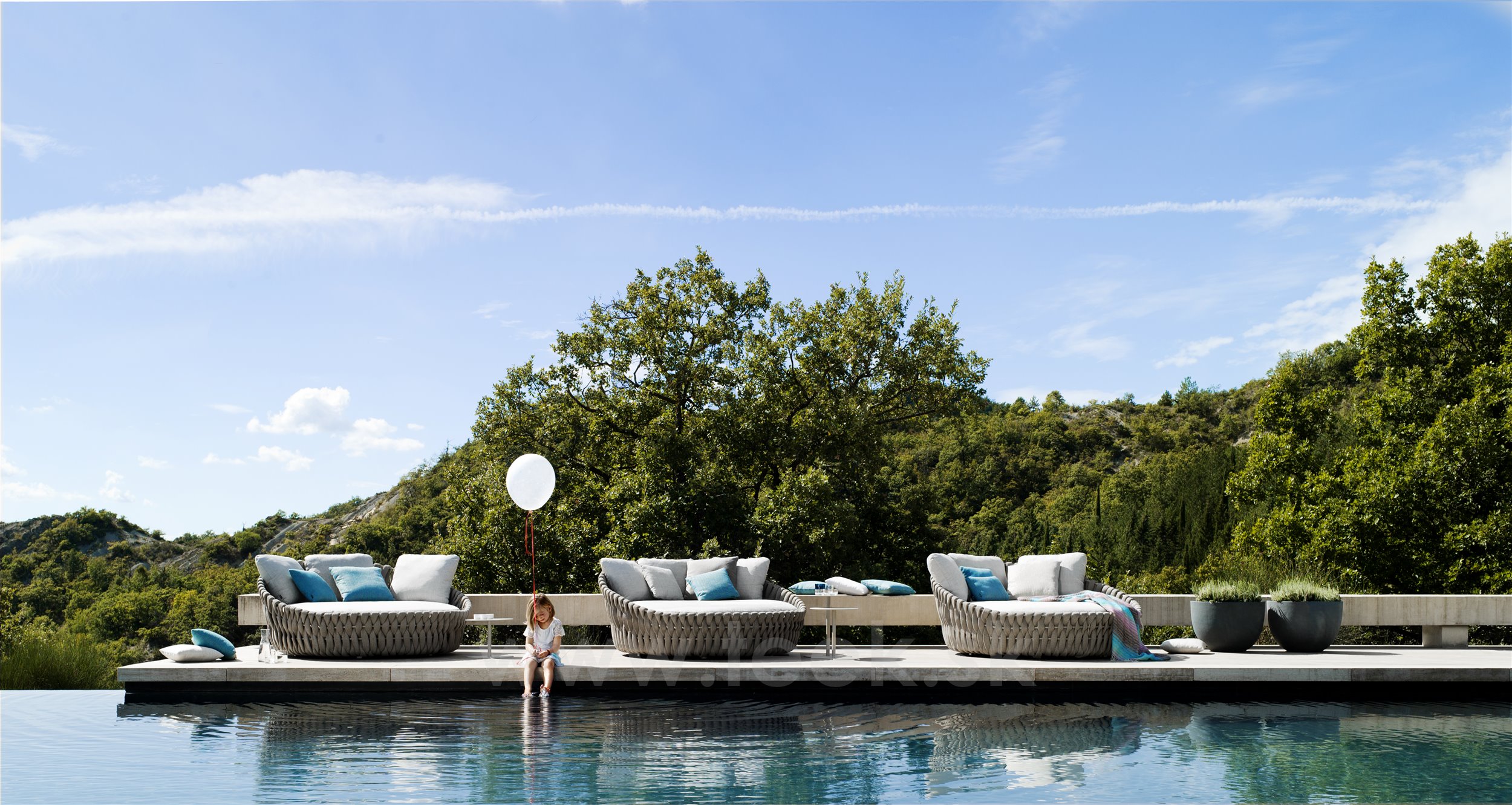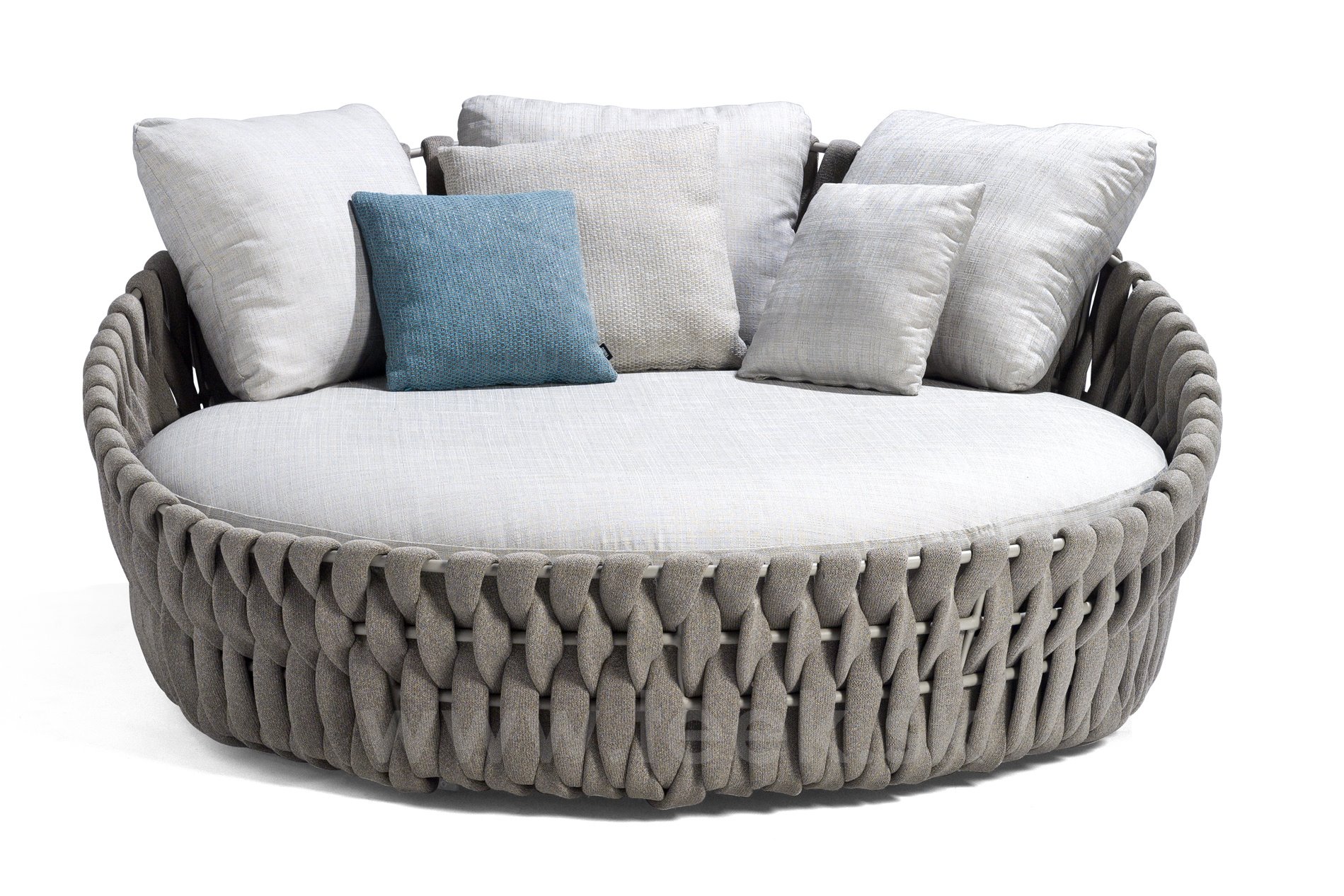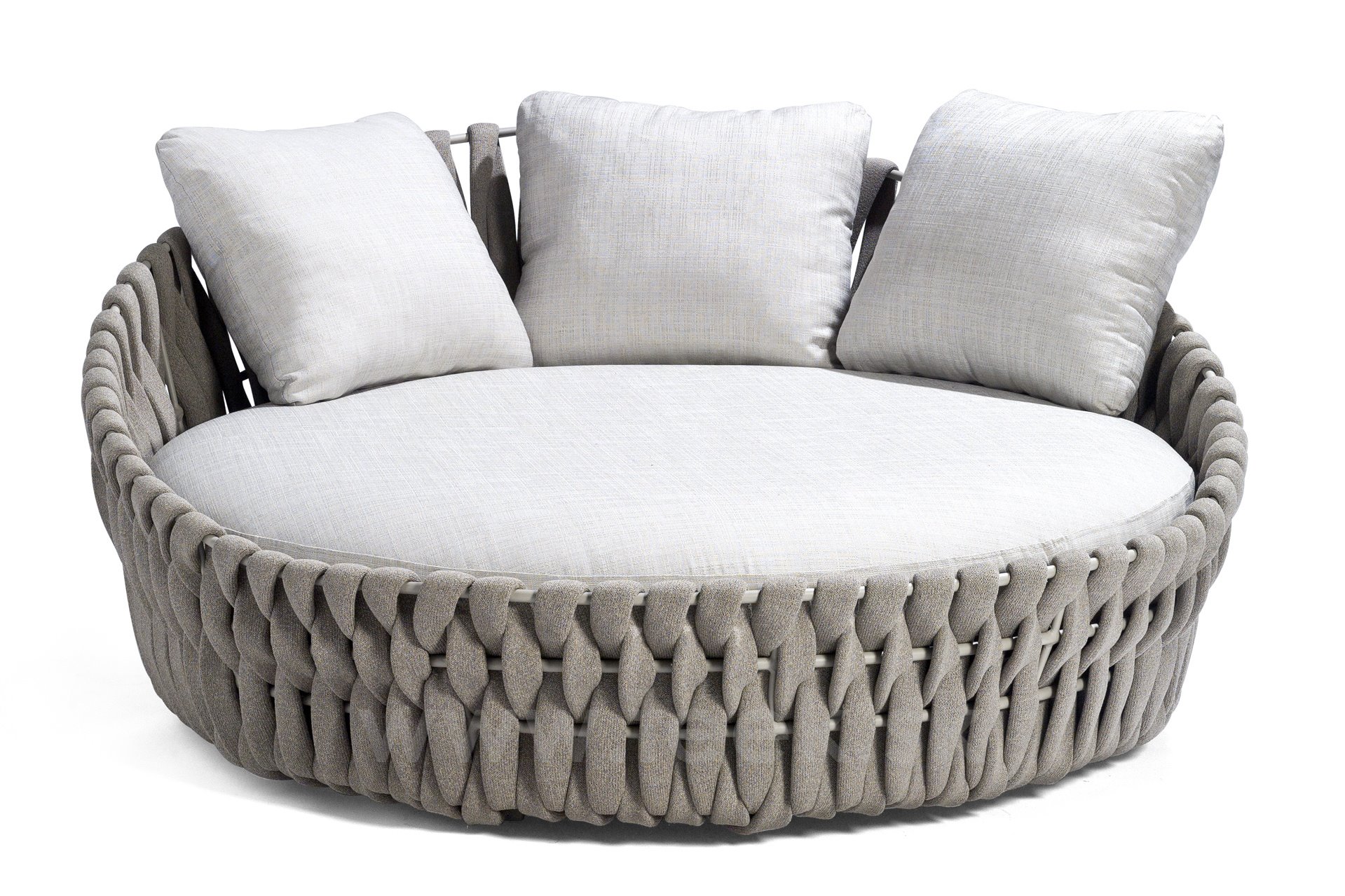 Vonkajšia denná posteľ Tosca od spoločnosti Tribu s rámom z lakovanej nehrdzavejúcej ocele, vyrobená z dizajnovo zaujímavého pásového (vyplneného) výpletu. K dispozícii vo viacerých farebných variantoch. Pre väčšie pohodlie odporúčame objednať sedacie a zadné vankúše z vonkajších odolných látok s nepremokavou výplňou.