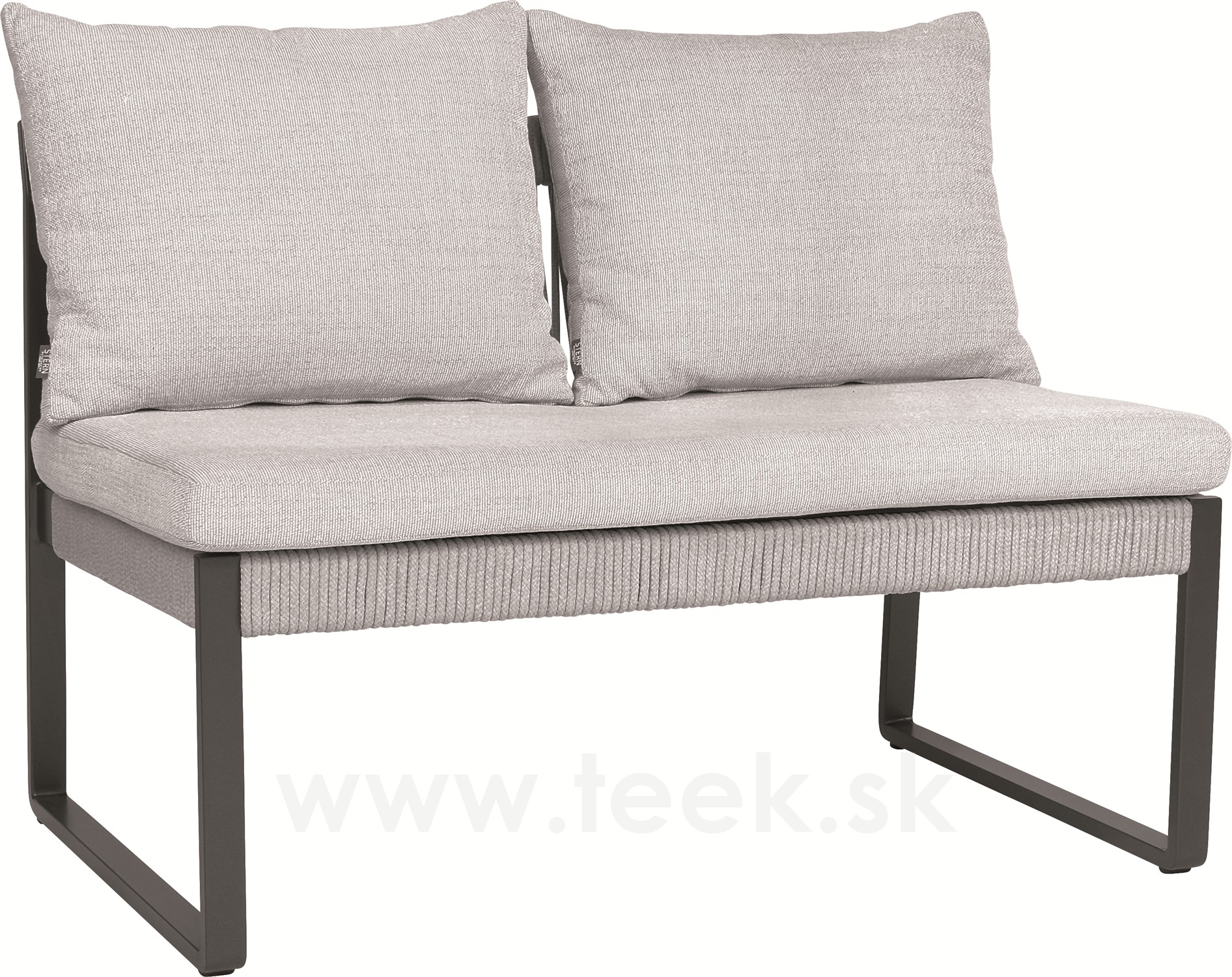2-místná jídelní lavice Tammo, Stern, 110x75x85 cm, rám lakovaný hliník šedočerný (anthracite), lankový výplet stone, venkovní látka pearl grey