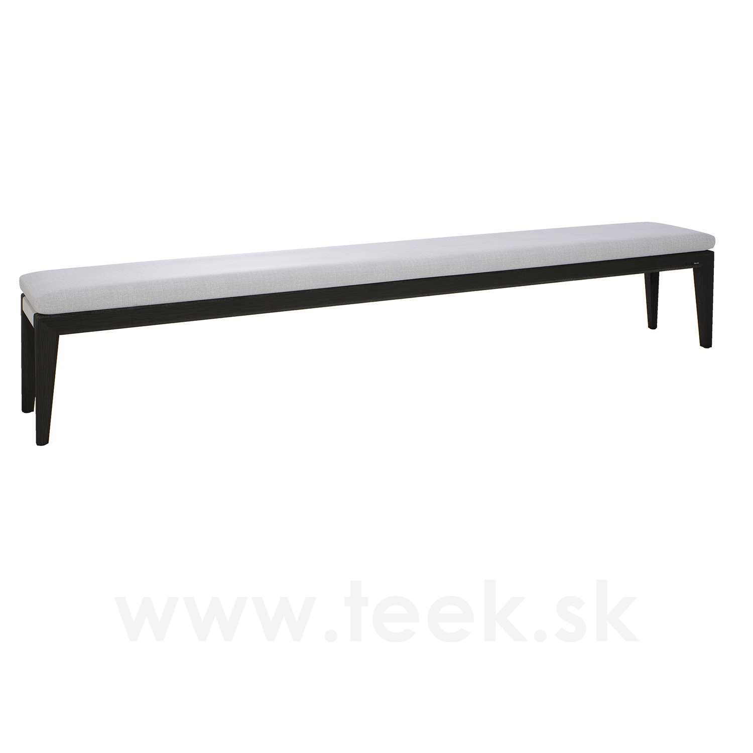 Jídelní lavice Sunrise značky Manutti. Zahradní lavice je vyrobena z přírodního nebo černě mořeného teakového dřeva.
