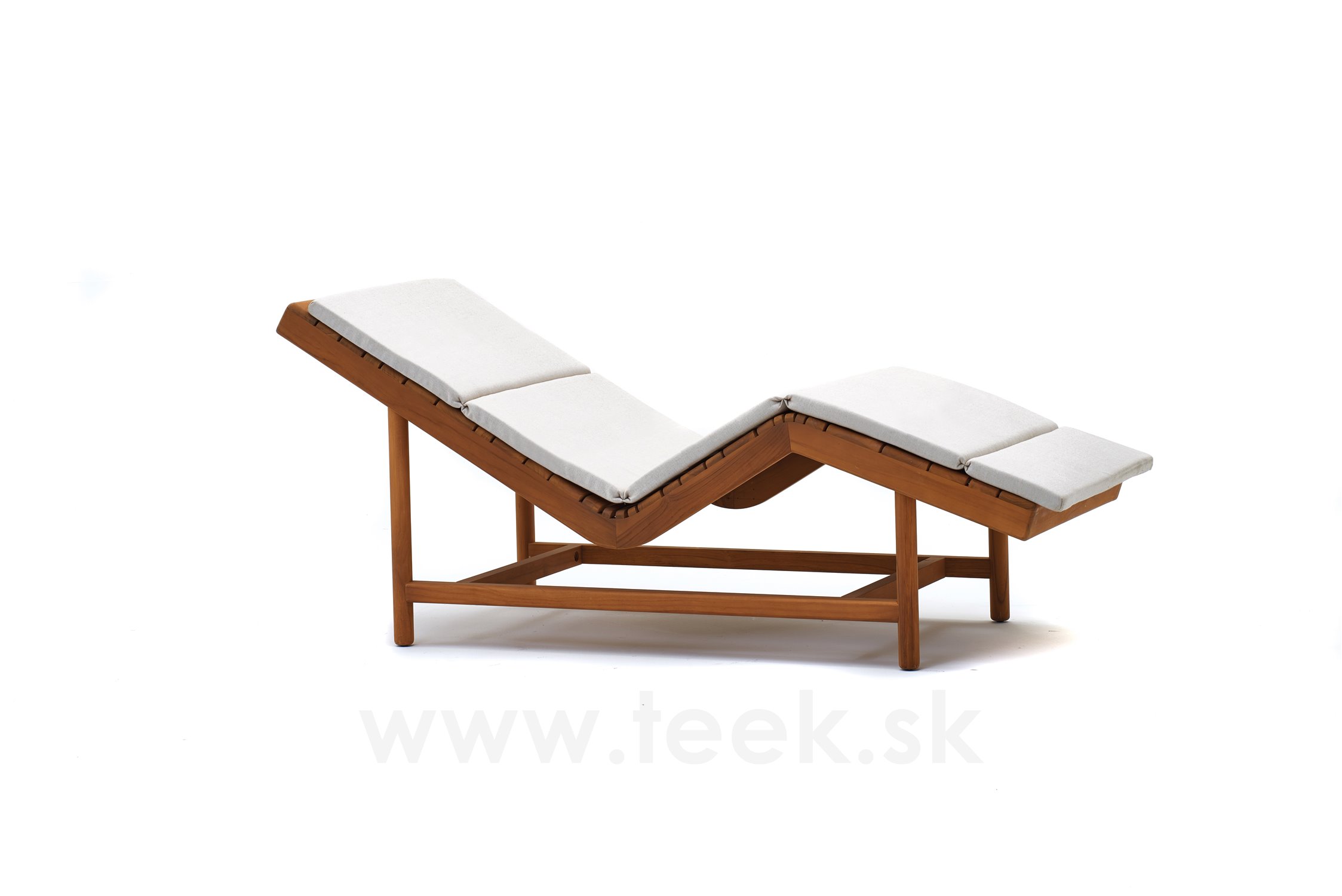 Zahradní relaxační lehátko Barcode značky Varaschin. Lehátko je vyrobeno z masivního teaku.