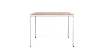 Barový stôl spodný Illum, Tribu, obdĺžnikový 152x100x93 cm, hliníkový rám, ľanová farba, vrchná doska z teakového dreva