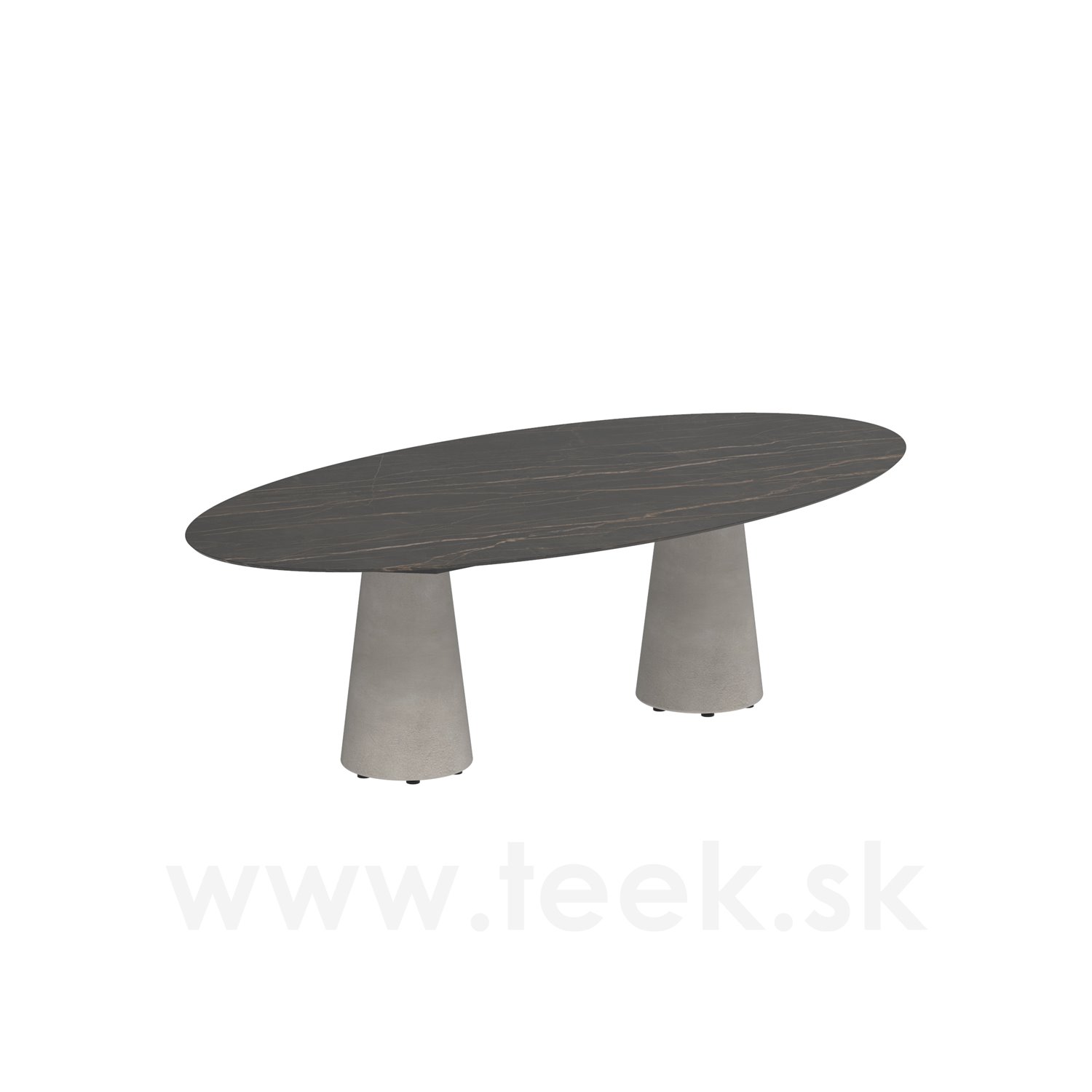 Betónový jedálenský stôl Conix, Royal Botania, elipsa 250x130x75 cm, podstavec betónová cementová sivá, vrchná doska keramická ceppo dolomitica