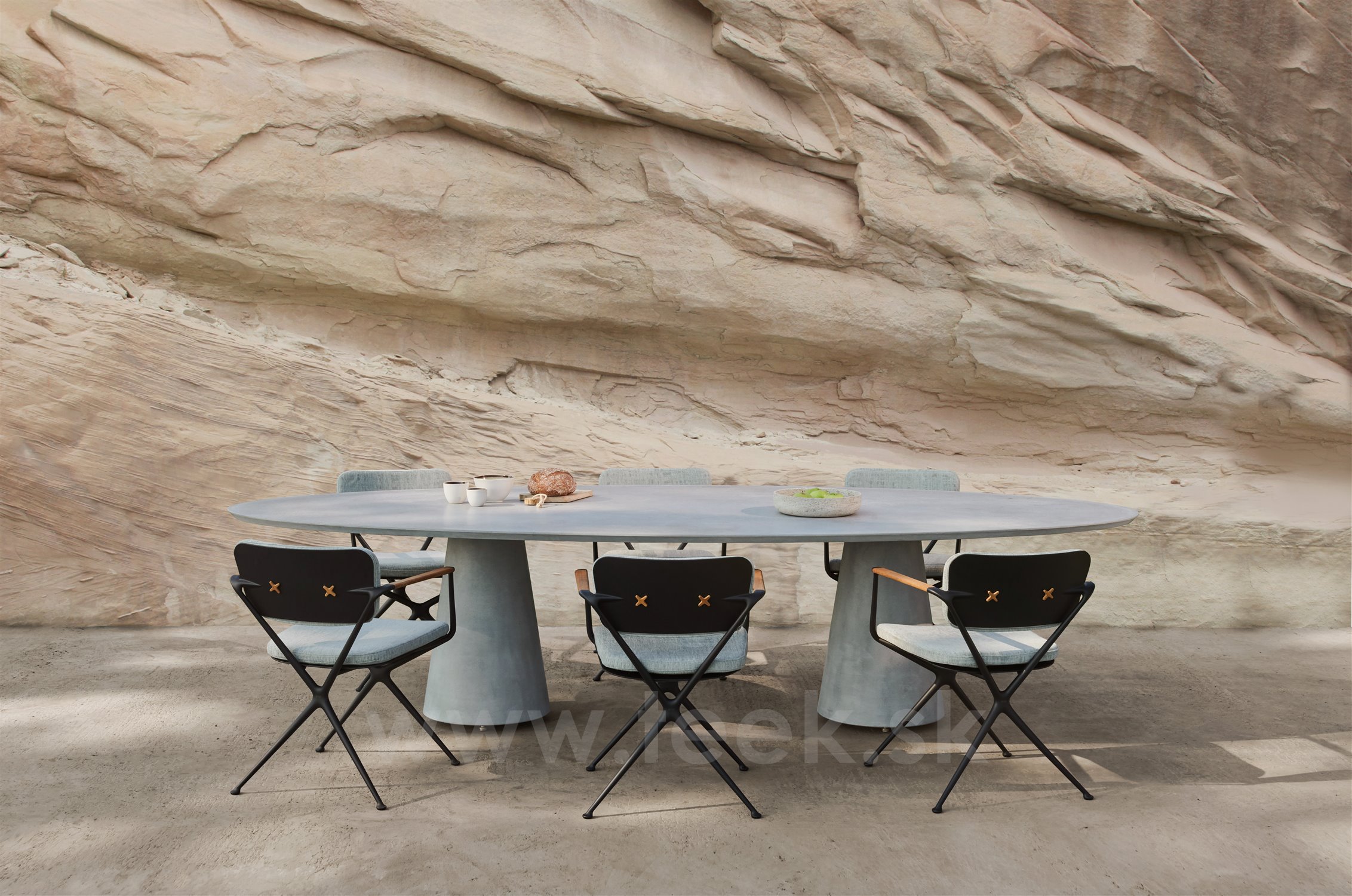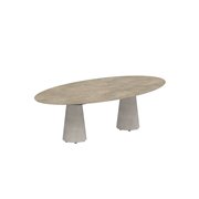 Betónový jedálenský stôl Conix, Royal Botania, elipsa 250x130x75 cm, podstavec betónová cementová sivá, vrchná doska keramická terra sabbia