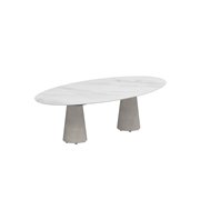 Betónový jedálenský stôl Conix, Royal Botania, elipsa 250x130x75 cm, podstavec betónová cementová sivá, vrchná doska keramická bianco statutario