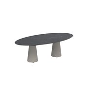 Betónový jedálenský stôl Conix, Royal Botania, elipsa 250x130x75 cm, podstavec betón cement sivý, vrchná doska keramika nero marquina