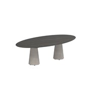 Betónový jedálenský stôl Conix, Royal Botania, elipsa 250x130x75 cm, podstavec betónová cementová sivá, vrchná doska keramická čierna