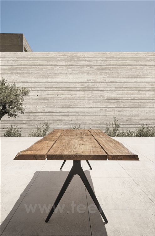 Stôl s neošetrenou hranou je určený na použitie v interiéri alebo musí byť dobre chránený pred dažďom.