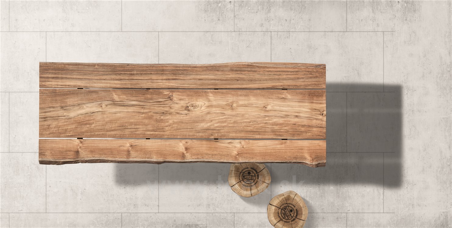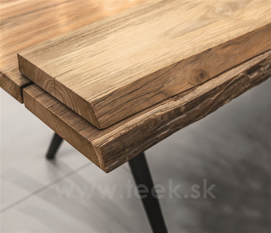 Teakovú časť si môžete vybrať v niekoľkých vyhotoveniach: leštené teakové drevo alebo brúsené teakové drevo vždy s možnosťou výberu úpravy hrán - brúsené alebo surové neošetrené s viditeľnou štruktúrou kôry.