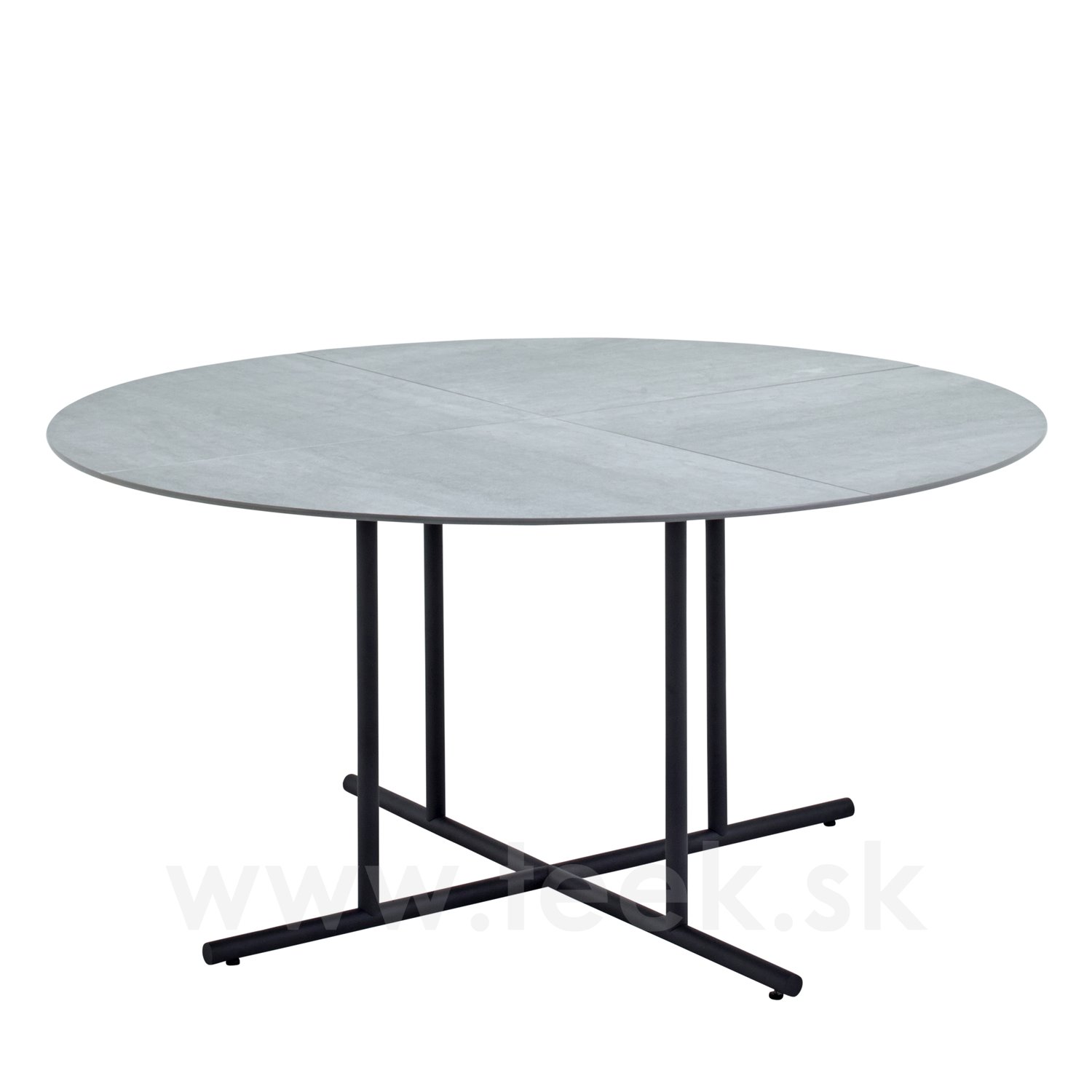 Jídelní stůl Whirl, Gloster, kulatý 150x73 cm, nerezový rám lakovaný černošedý (meteor), keramická deska šedá (pumice) 4-dílná