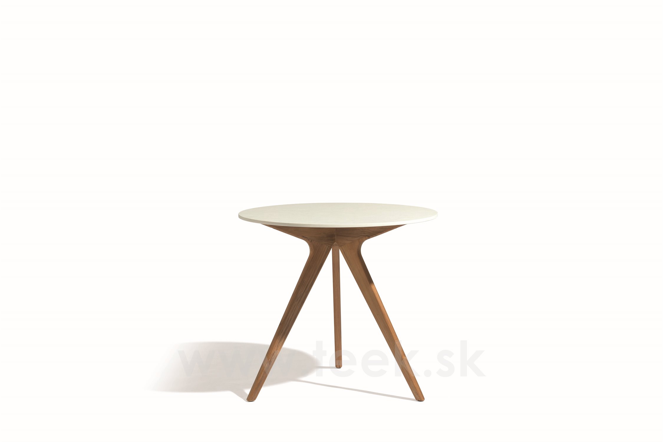Zvýšený jídelní stůl Torsa, Manutti, kulatý prům. 80x91 cm, rám teak, deska keramika 12 mm, dekor marble white