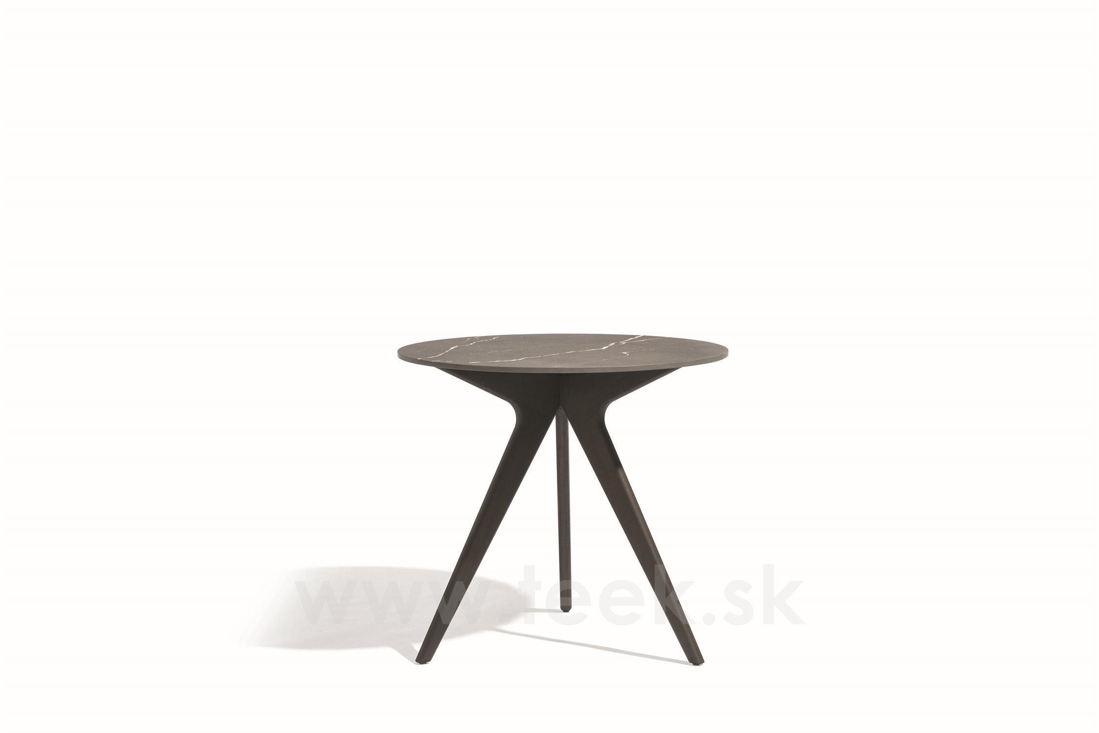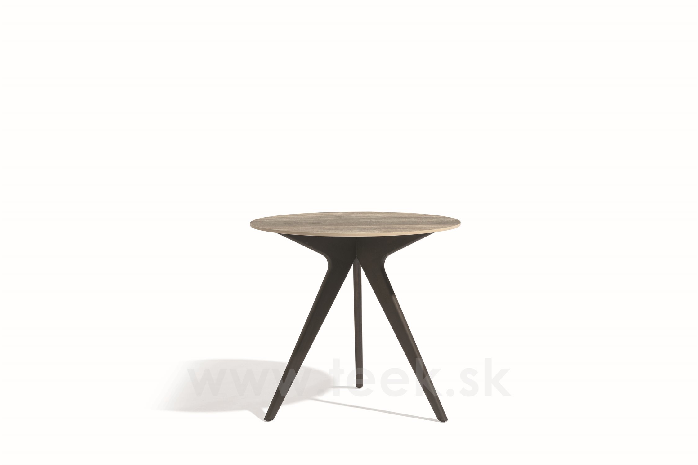 Zvýšený jídelní stůl Torsa, Manutti, kulatý prům. 80x91 cm, rám teak, deska keramika 12 mm, dekor basalt black