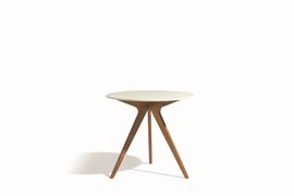 Zvýšený jídelní stůl Torsa, Manutti, kulatý prům. 80x91 cm, rám teak, deska keramika 12 mm, dekor perla