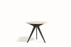 Zvýšený jídelní stůl Torsa, Manutti, kulatý prům. 80x91 cm, rám teak, deska keramika 12 mm, dekor fossil