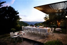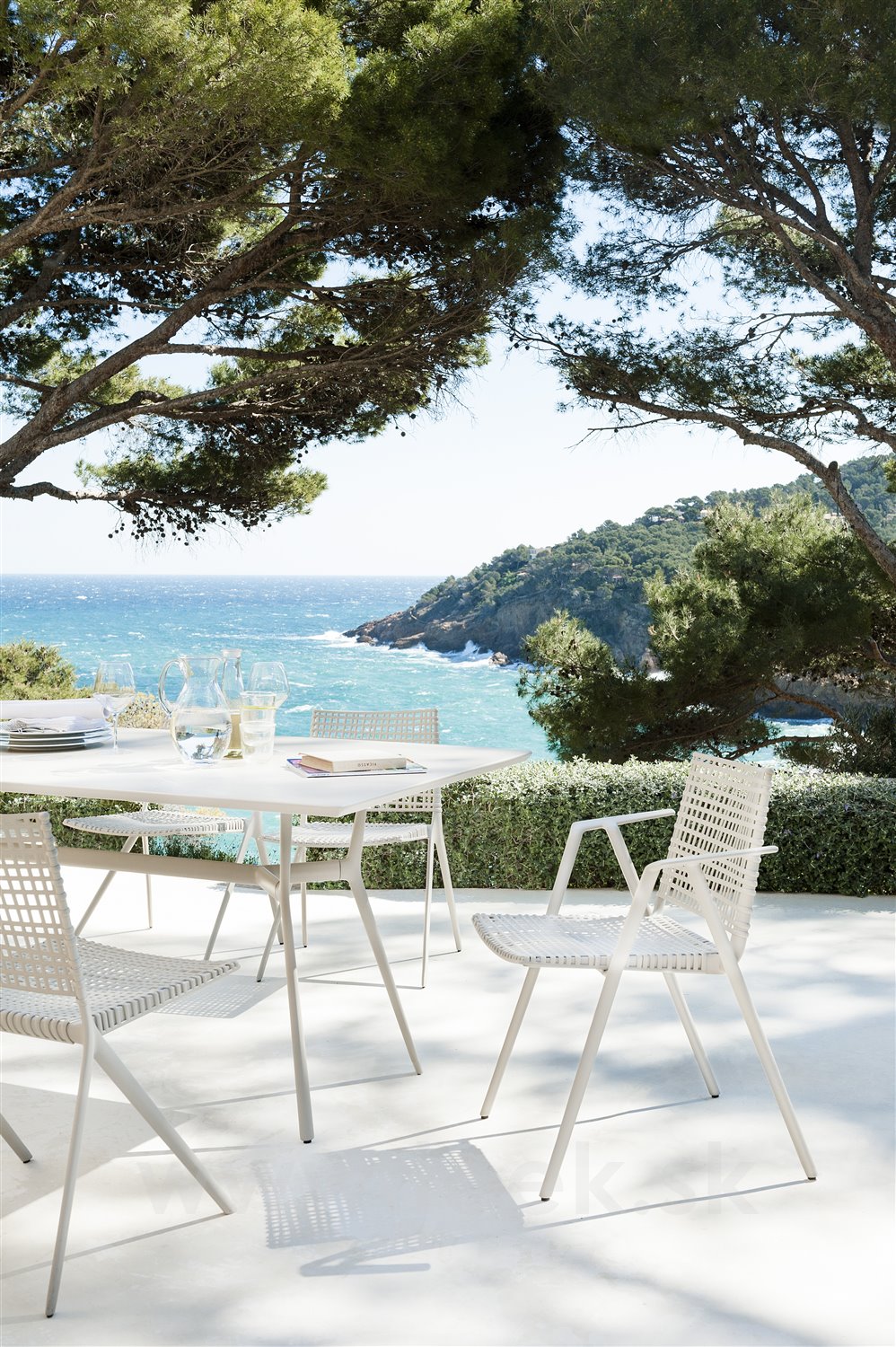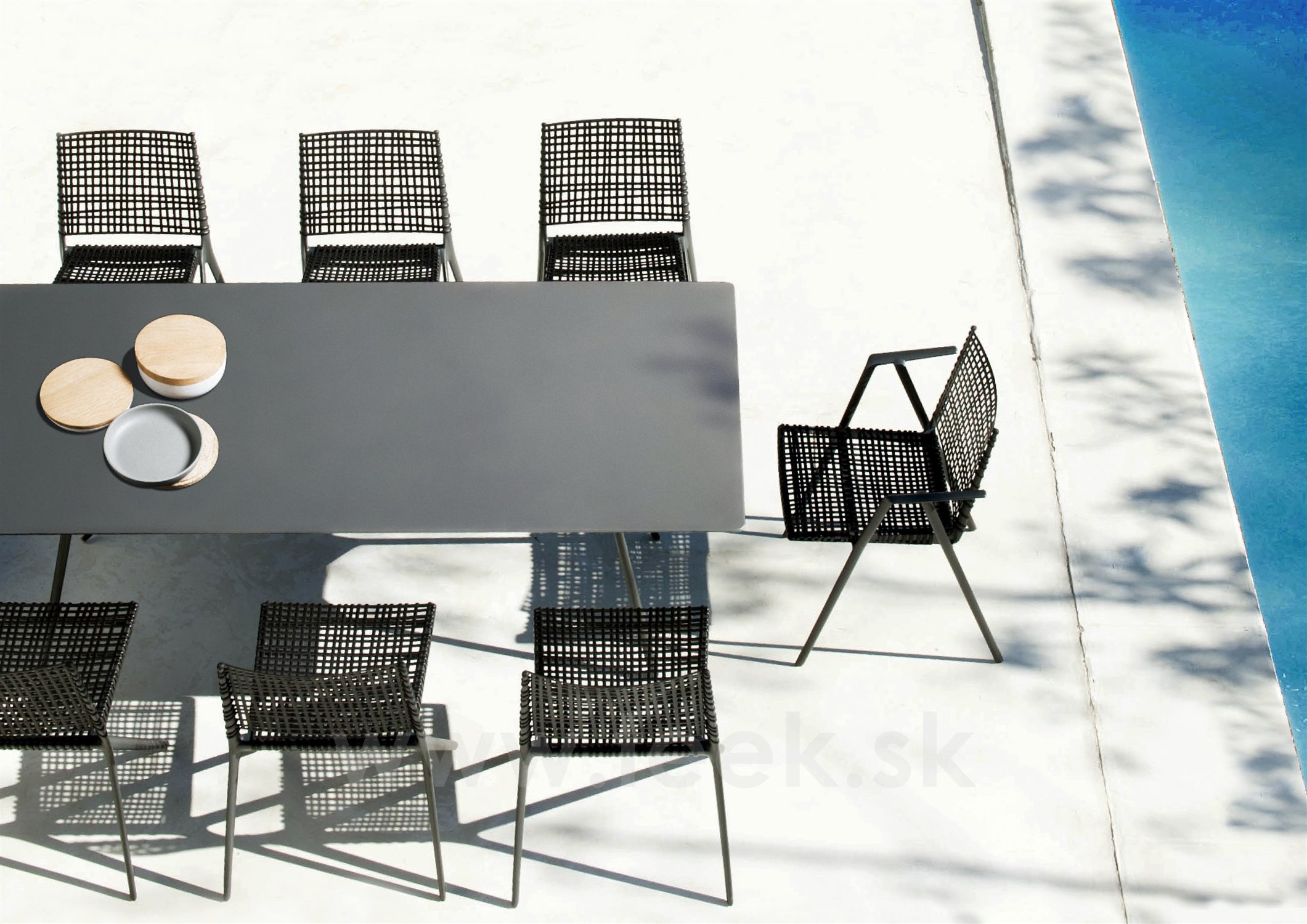 Vonkajší jedálenský stôl Branch od spoločnosti Tribu s rámom z lakovaného hliníka, stolová doska z rôznych materiálov. Viacero farieb a možnosť výberu stolovej dosky podľa vzorkovníka.
