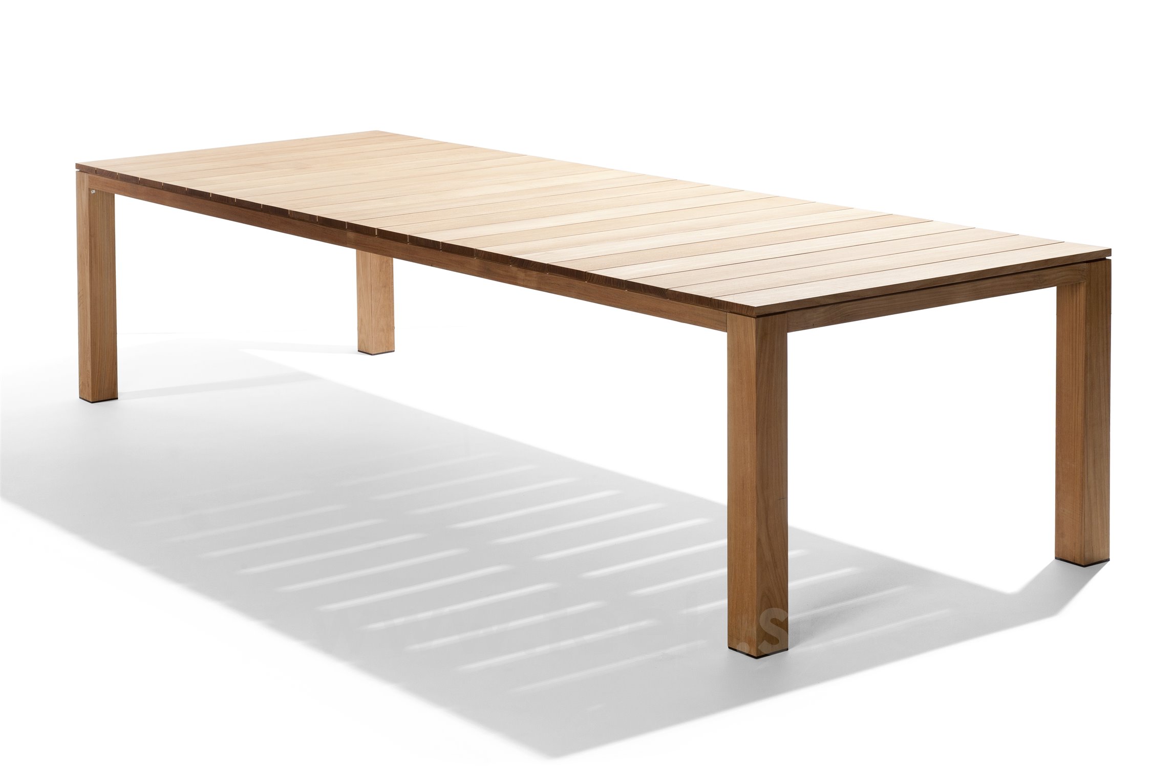 Vonkajší jedálenský stôl Kos Teak od spoločnosti Tribu vyrobený z masívneho teakového dreva.