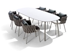Jedálenský stôl Tosca, Tribu, oválny 298x98 cm, nerezová oceľ, keramika