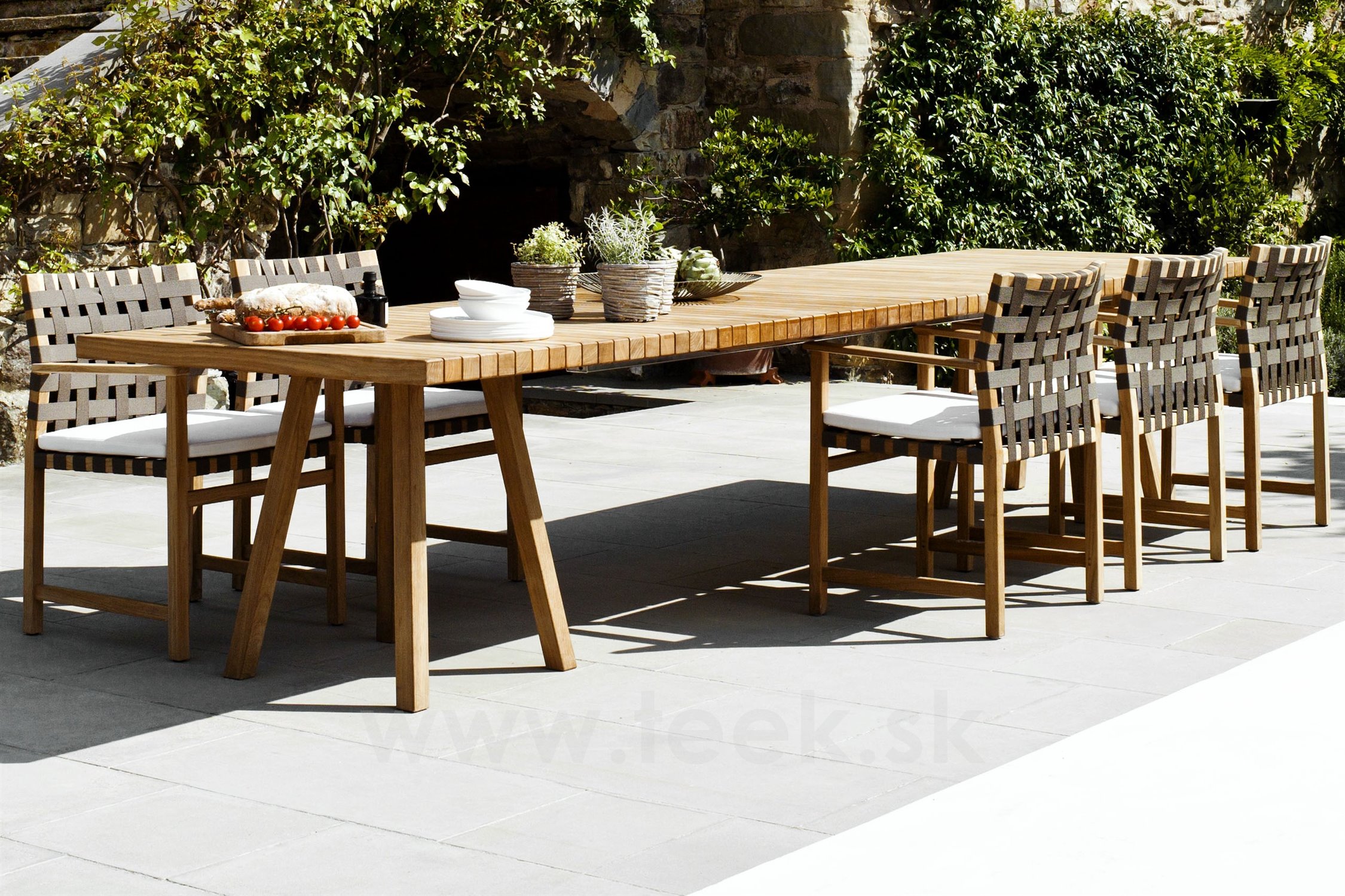 Vonkajší jedálenský stôl z masívneho teakového dreva Vis a Vis od spoločnosti Tribu.
