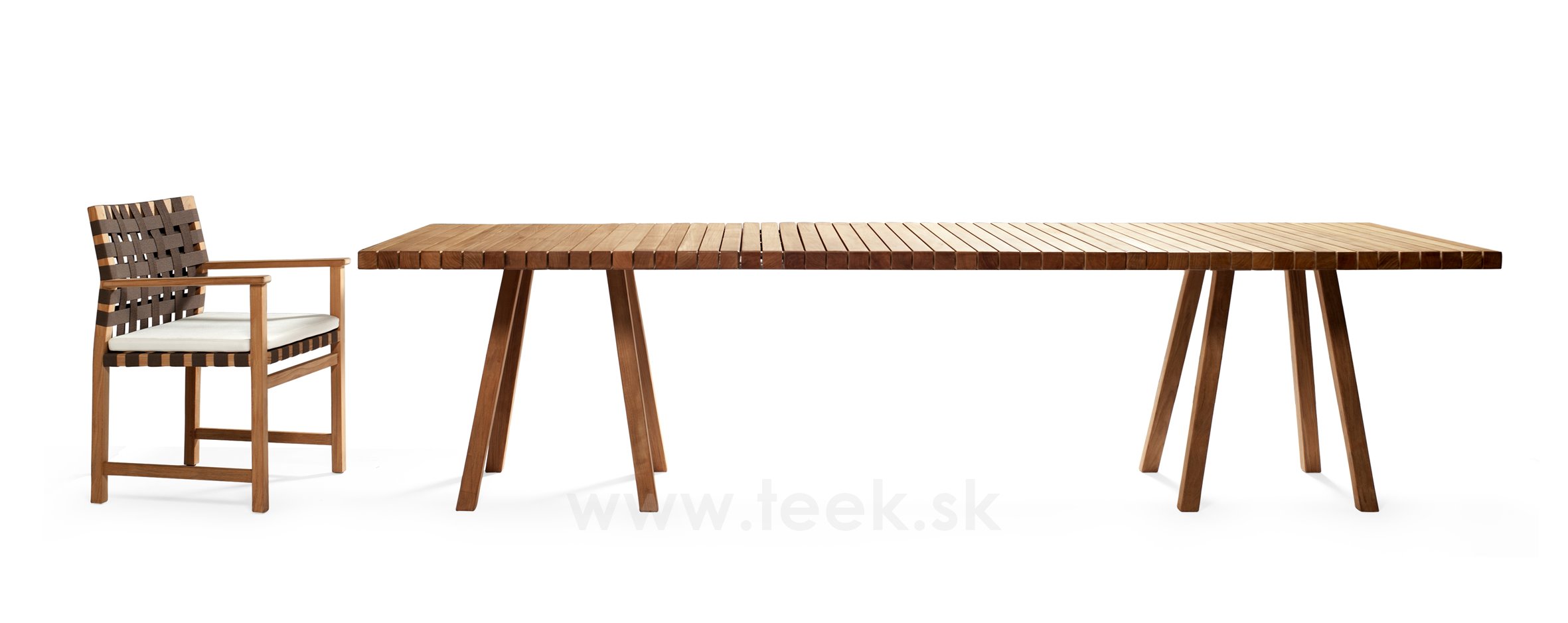 Teakový jedálenský stôl Vis a Vis, Tribu, obdĺžnikový 600x99x75 cm, teakový rám, teaková doska