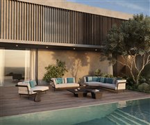 Celoteakový konferenční čtvercový stolek Cobi značky Manutti.