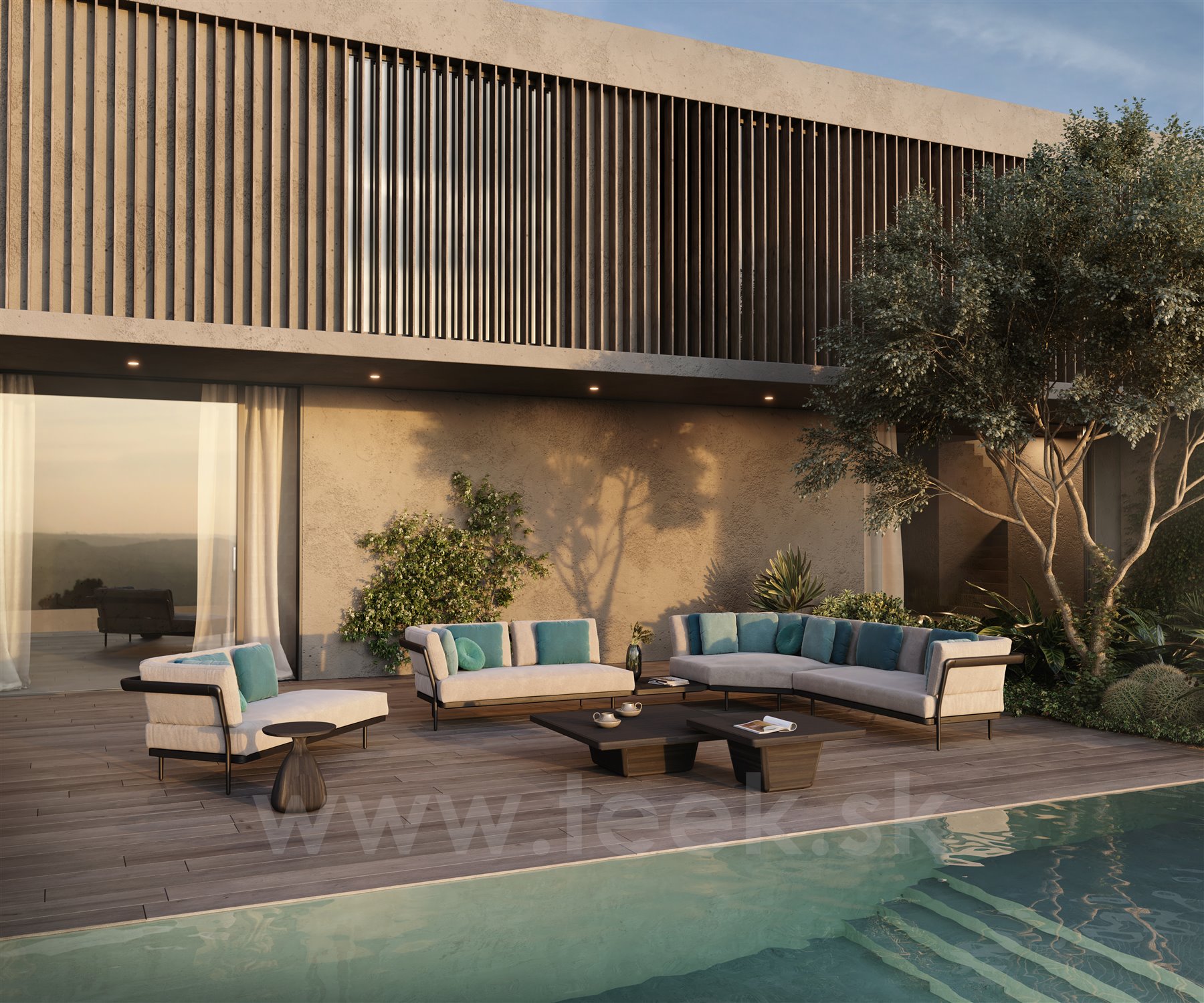Celoteakový konferenční obdélníkový stolek Cobi značky Manutti.