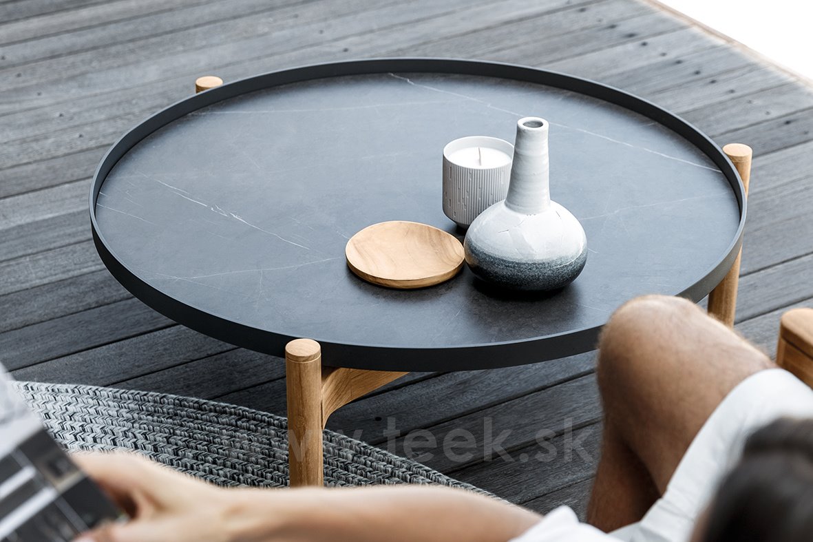 Konferenčný stolík Sepal, Gloster, okrúhly 87 cm, teak, keramika